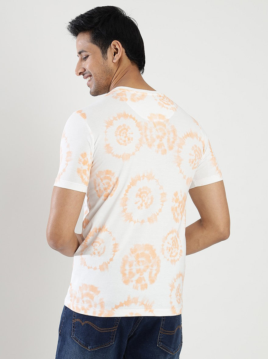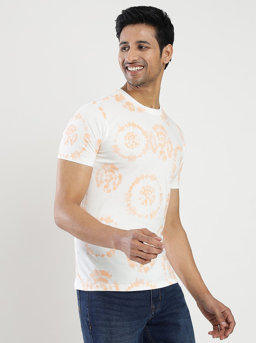 Orange Printed Slim Fit T-Shirt | Greenfibre