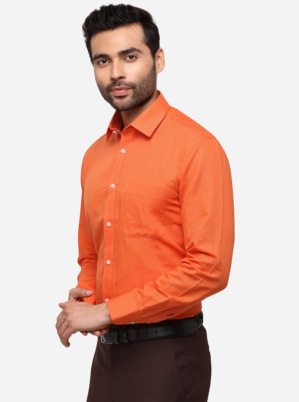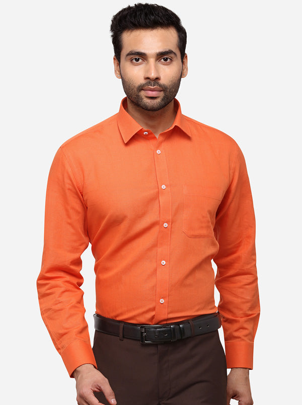 Orange Solid Regular Fit Formal Shirt | Greenfibre