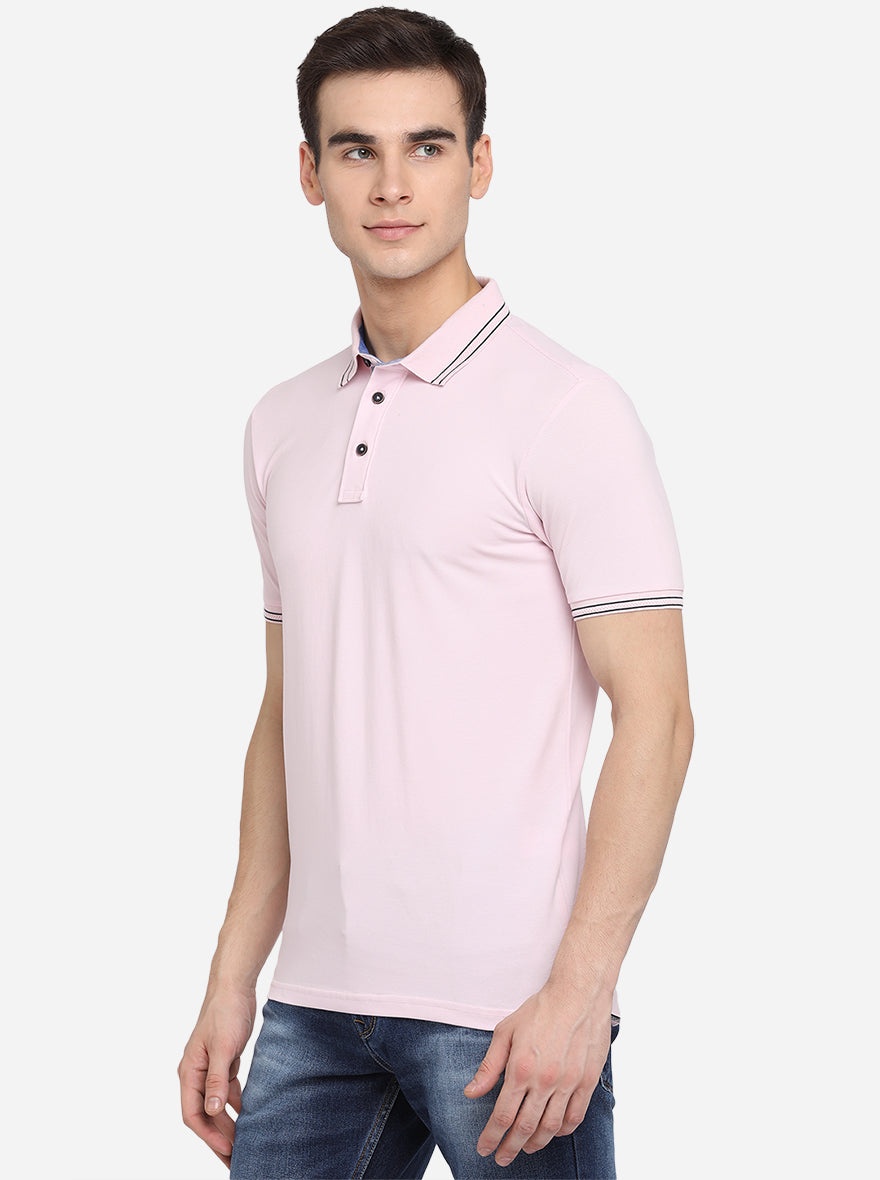 Orchid Pink Solid Slim Fit Polo T-Shirt | JadeBlue