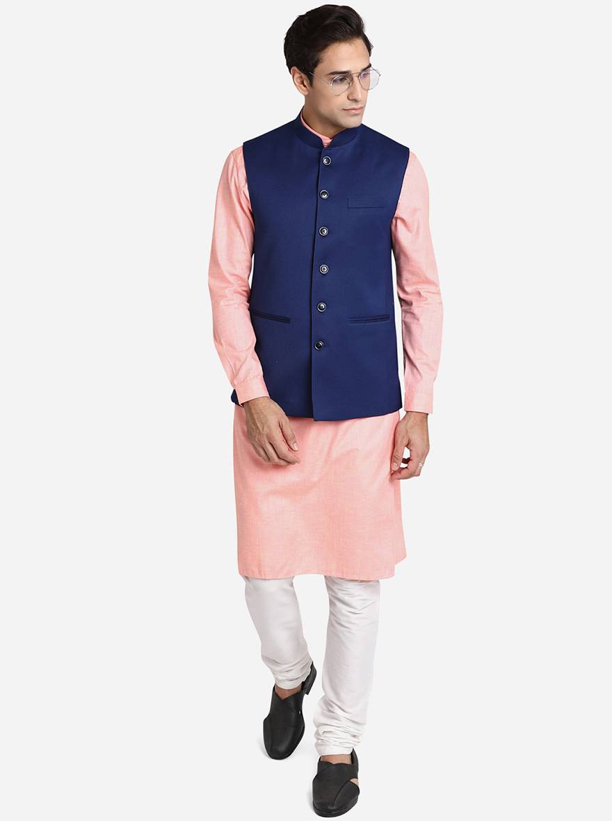 Details: You are sure to fall in love with your attire wearing this smart Blue Modi Jacket from the latest collection of Modi Jacket. It features a mandarin collar, sleeveless and offers a regular fit. It is adorned with a self-textured pattern and has buttons on the front, making up for a timeless choice. Crafted with Terry Rayon, it ensures you a great comfort and a great breathability during long hours. Perfect for festive wear and wedding wear. Team it with a kurta and White churidar and a pair of Jutti to complete the look like a pro.