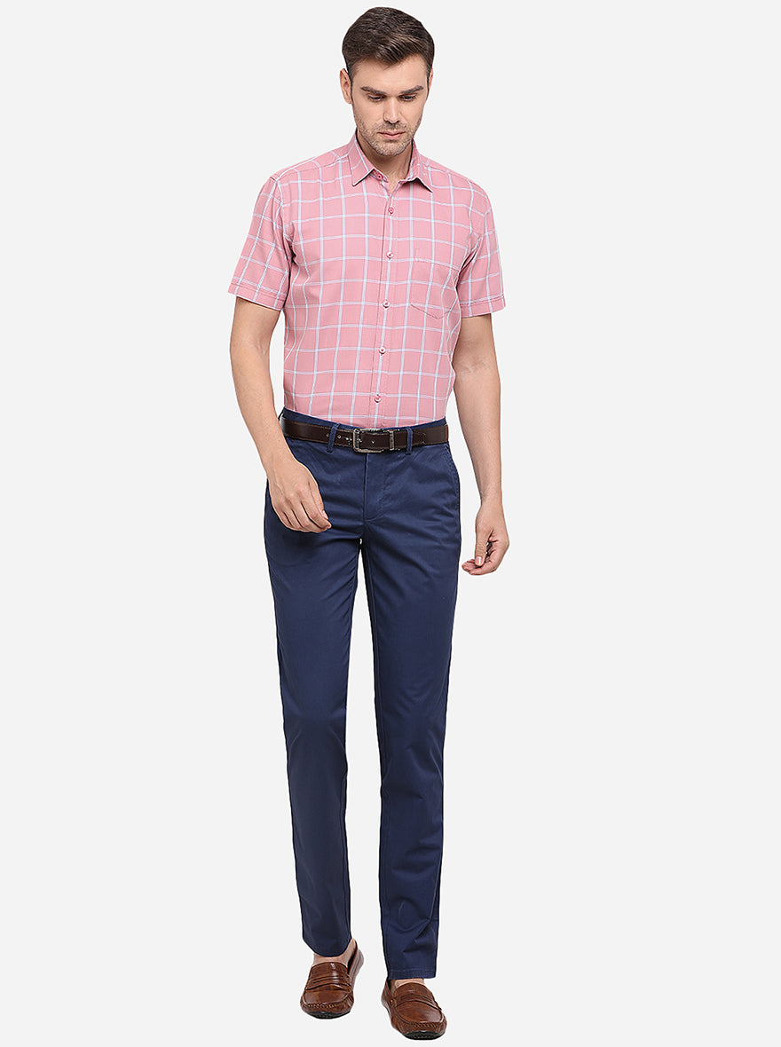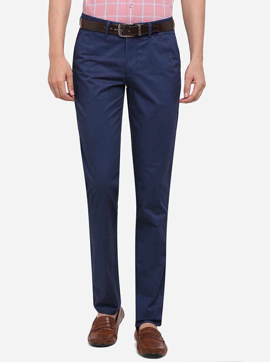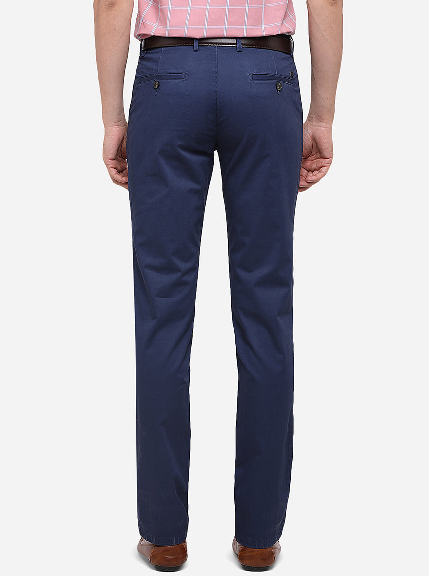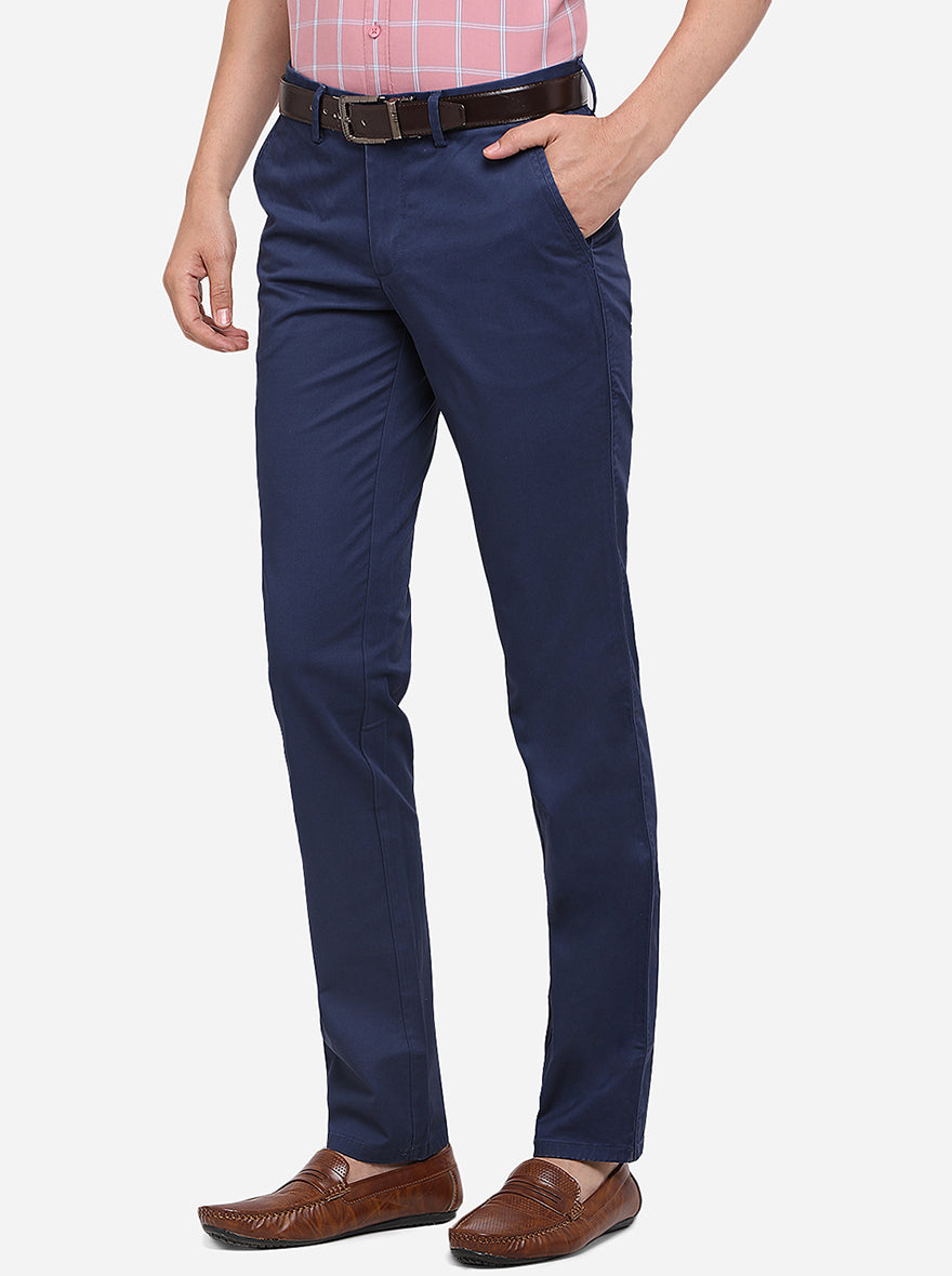Parade Blue Solid Slim Fit Casual Trouser | JadeBlue