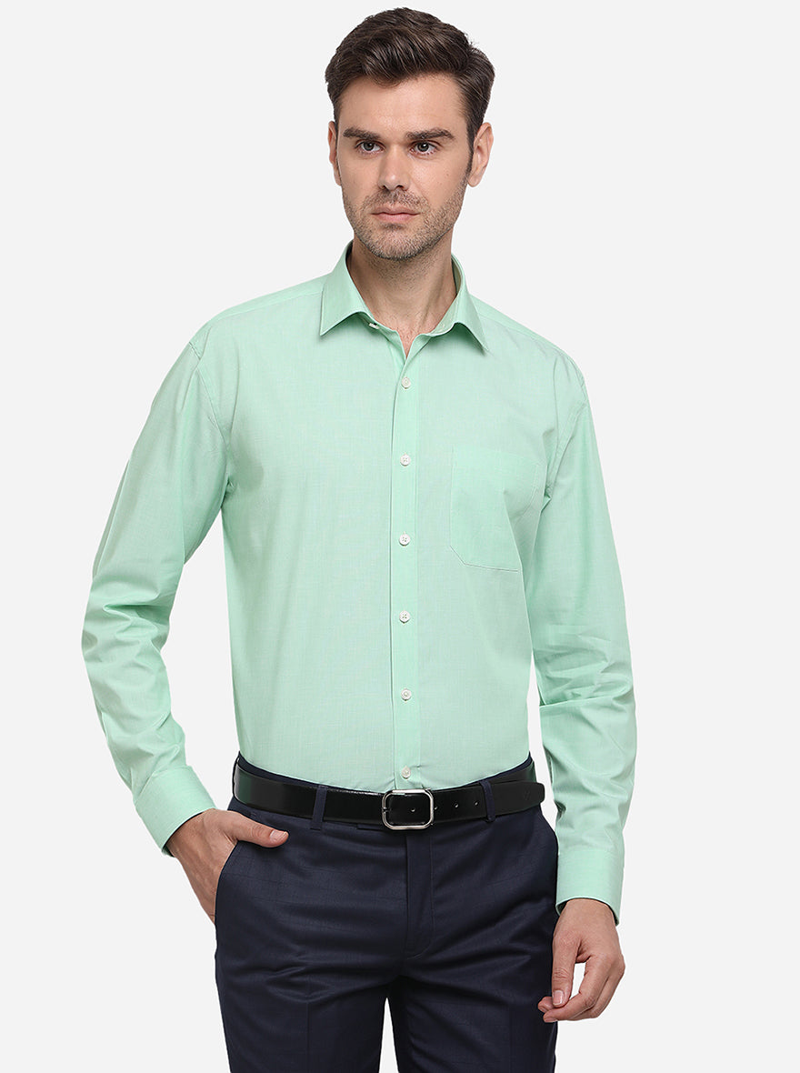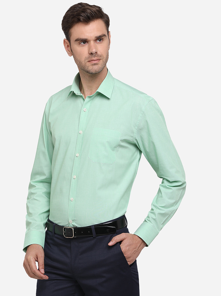 Pastel Green Solid Regular Fit Formal Shirt | JadeBlue
