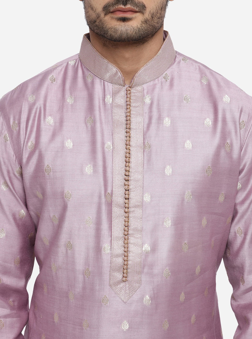 Details: Dress up in this super classy Self Design Pastel Purple KURTA SET Add a stylish edge to your ethnic wear collection by opting for this Self Design Pastel Purple KURTA SET This piece is stitched with basic features and lets you stay fashionable and comfortable all day long. Made to perfection, this KURTA SET is styled with basic features and offers all-day comfort. Own it. JadeBlue launches super comfortable for men's bottom wear they come tag less for additional comfort. This regular Silk is super comfortable. It is a great wear for an all-day outing. Stay comfy in our super soft Men's bottom wear.