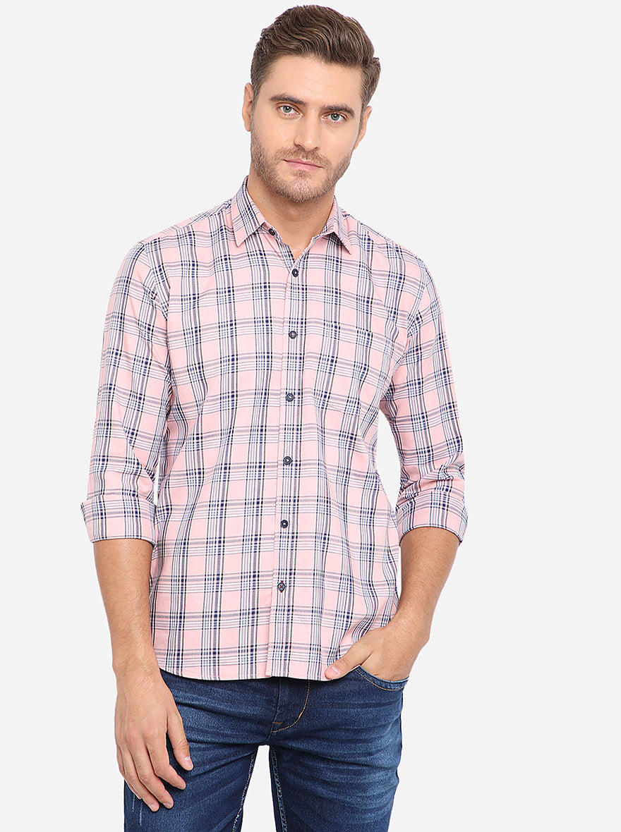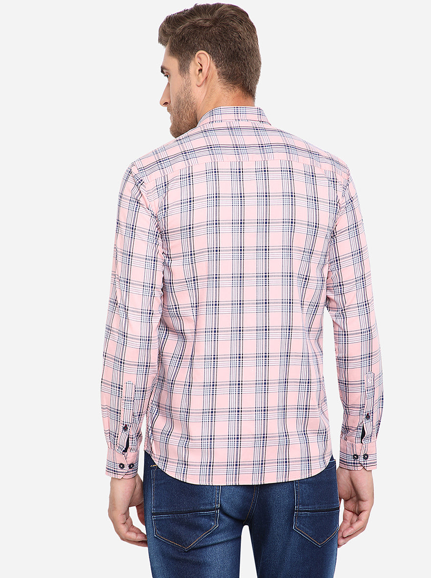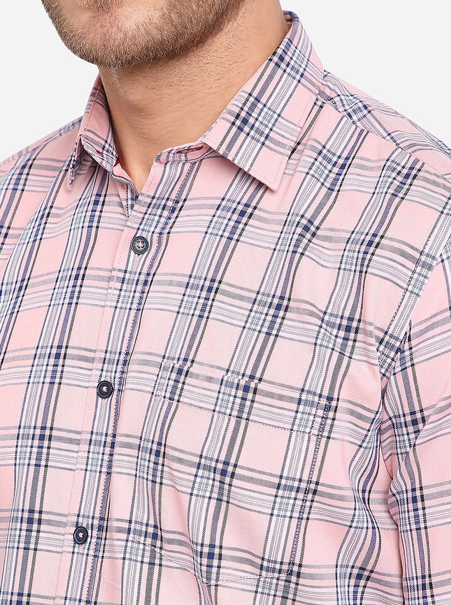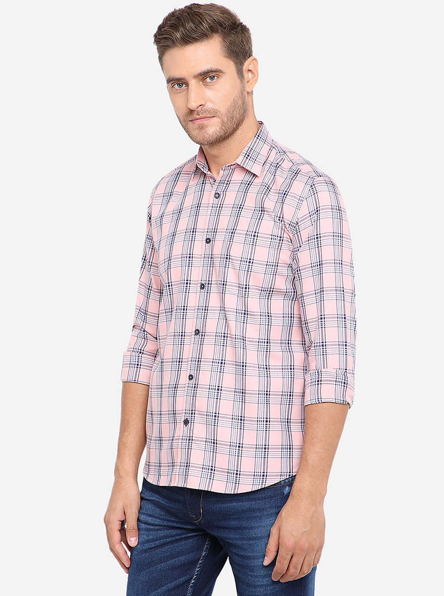 Peach & Blue Checked Slim Fit Semi Casual Shirt | Greenfibre