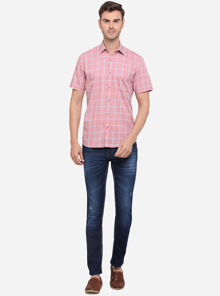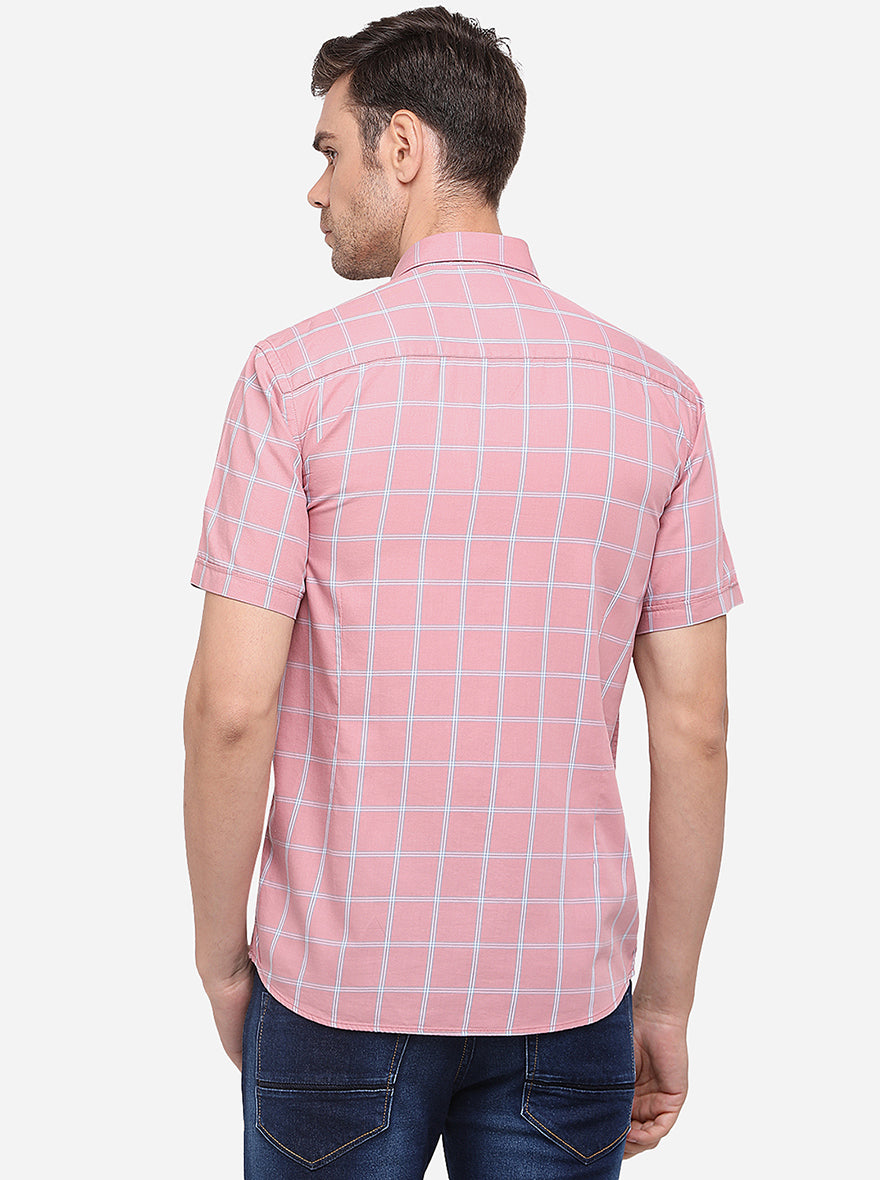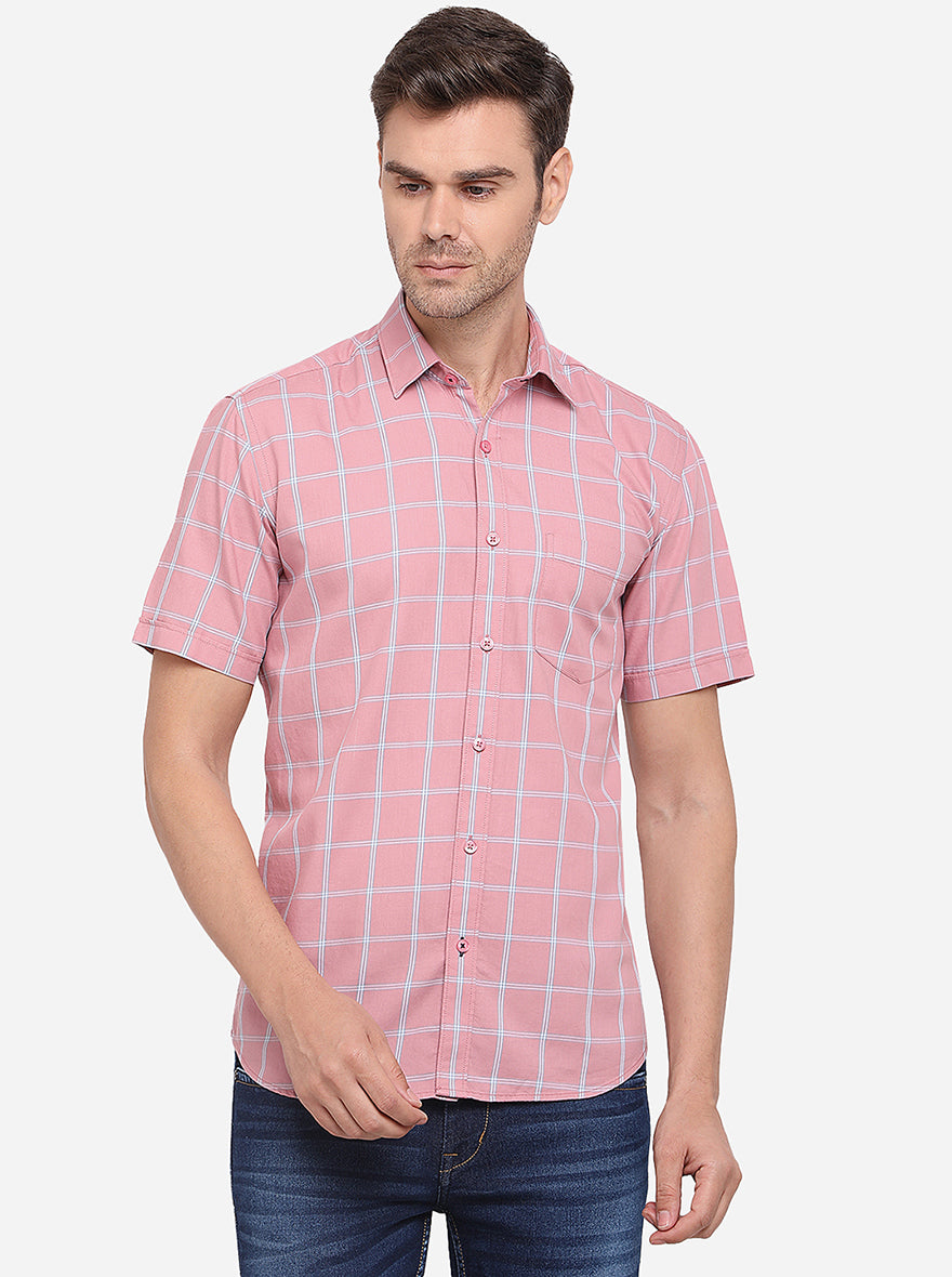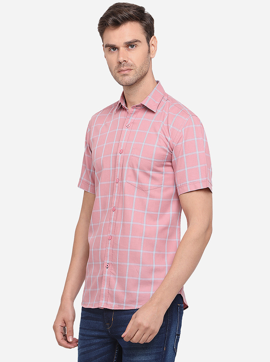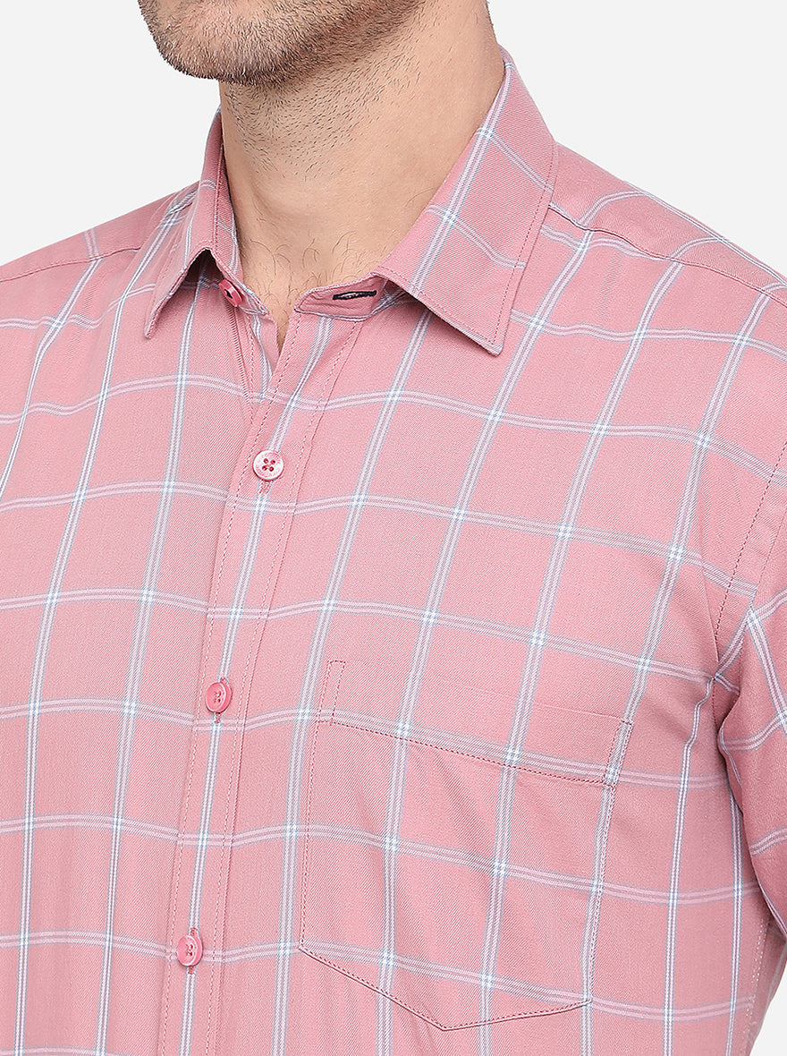 Peach Checked Slim Fit Semi Casual Shirt | Greenfibre