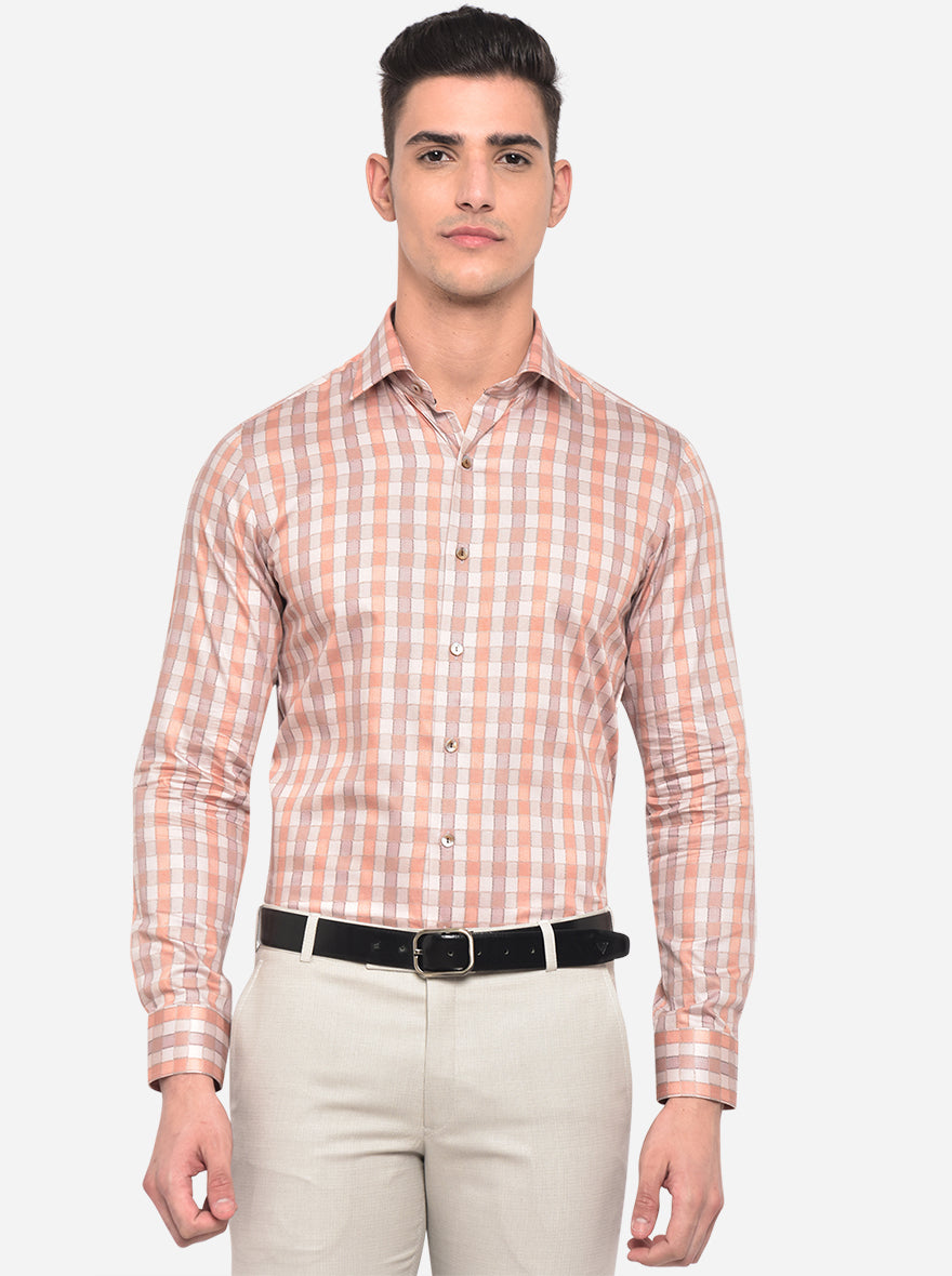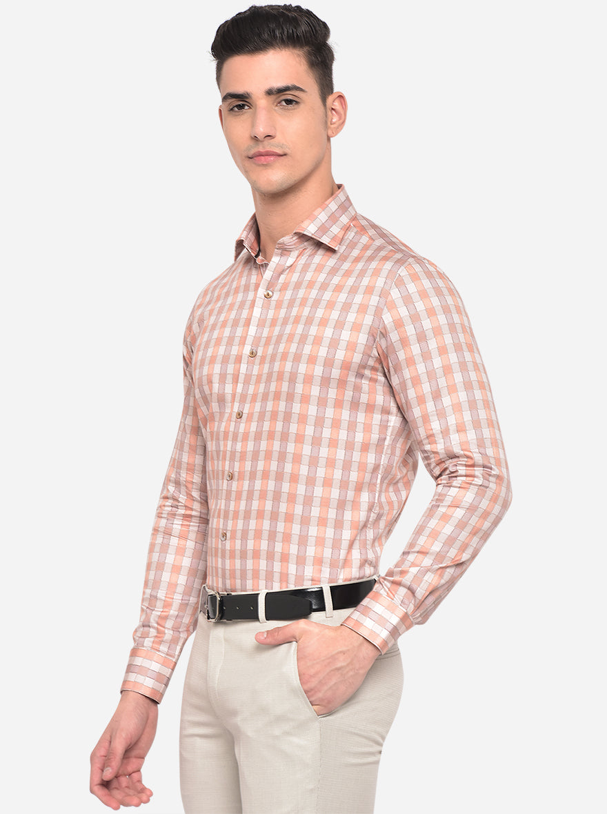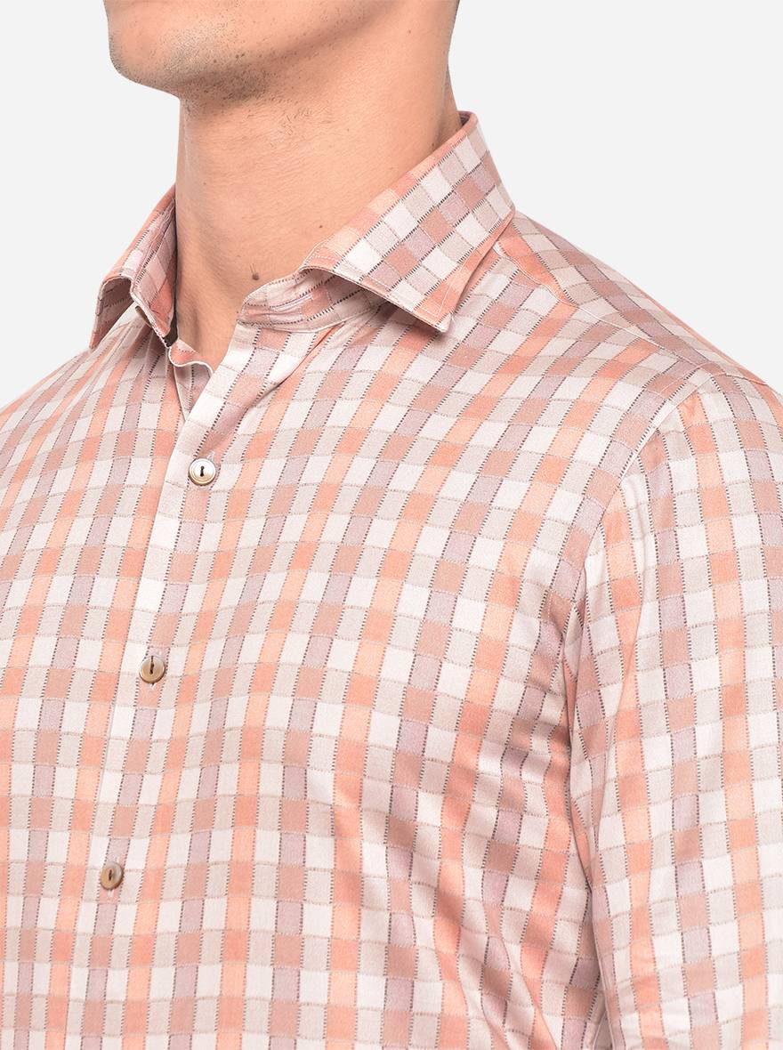Peach Printed Slim Fit Party Wear Shirt | Wyre