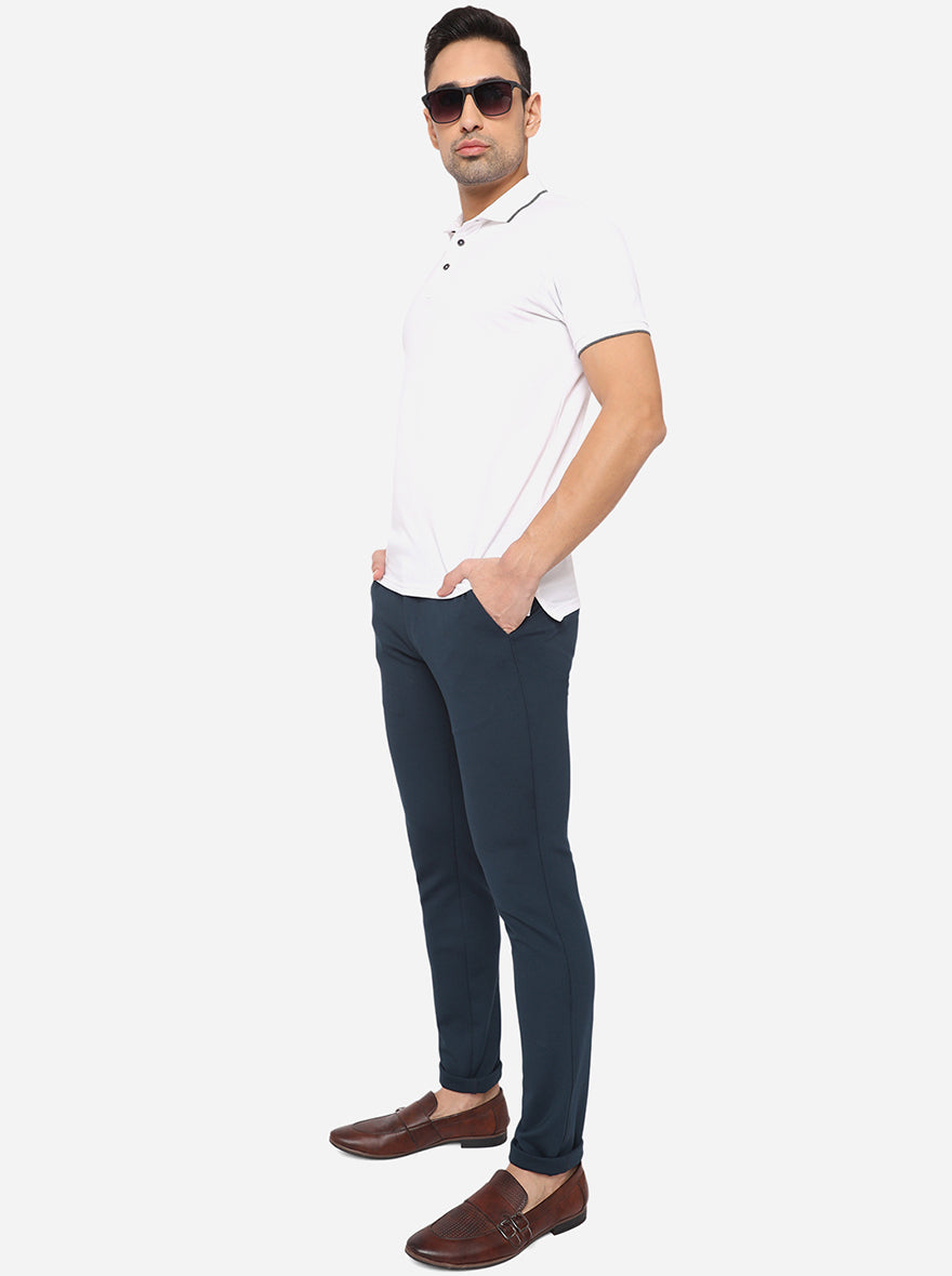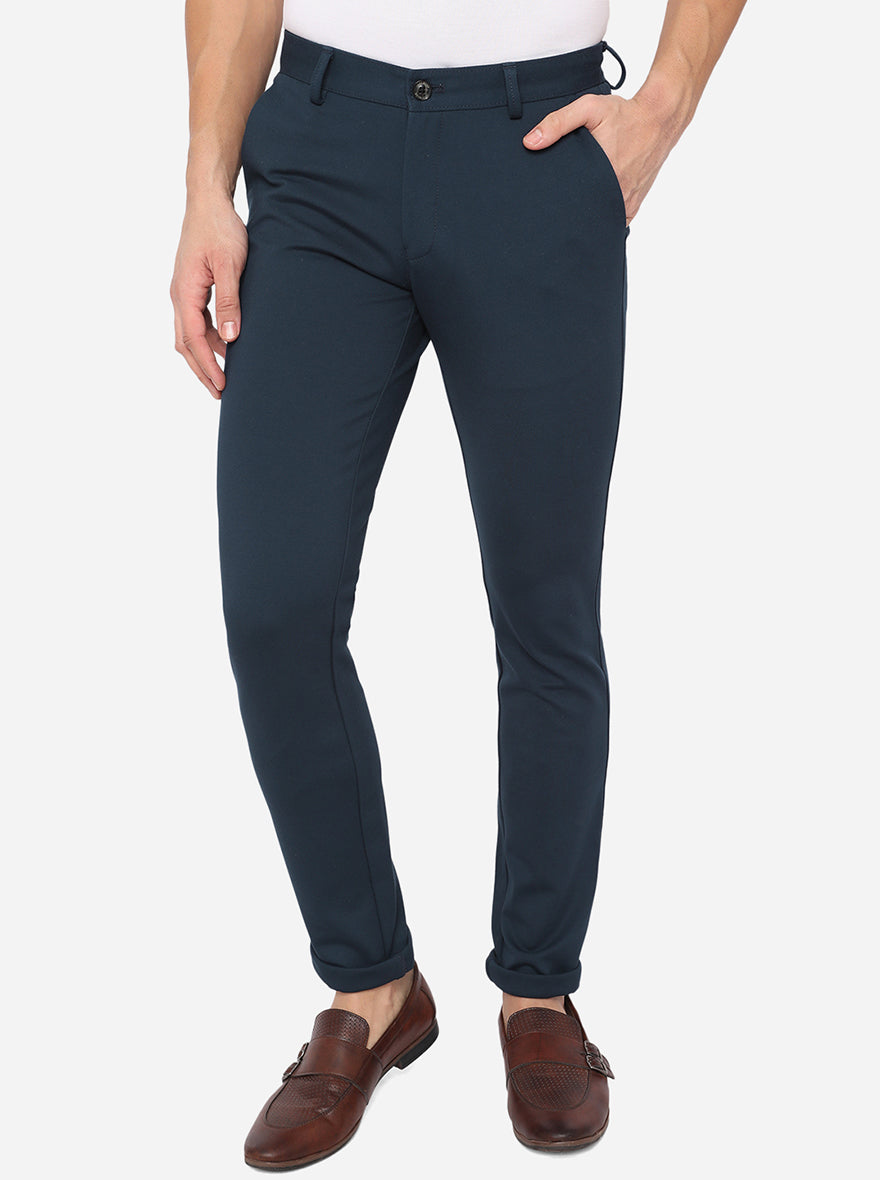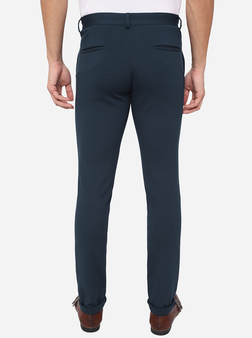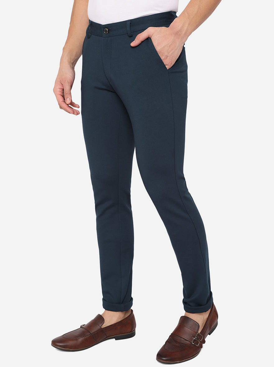 Peacock Blue Solid Venice Fit Casual Trouser | JadeBlue