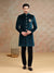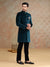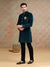 Details: Step into the spotlight with TULA's exquisite Peacock Green Velvet Indowestern Suit, designed to merge tradition with contemporary style. This regular fit ensemble is meticulously crafted from premium velvet fabric, providing a luxurious feel and sophisticated appearance. The suit is adorned with intricate Zardosi, thread, and cutdana embroidery, creating a captivating design that speaks of skilled craftsmanship and attention to detail. The classic straight cut and full sleeves add to the elegance of the design, while the mandarin collar adds a modern flair, making it the ideal attire for sangeet, ring ceremonies, or for a father at a wedding. The vibrant peacock green shade provides a striking visual appeal, ensuring you stand out and make a lasting impression at any event. Whether you're attending a reception or celebrating a special occasion, the TULA Indowestern Suit offers timeless sophistication and impeccable style. Elevate your wardrobe with this masterpiece that embodies a perfect blend of tradition and modernity, allowing you to exude confidence and charm with every appearance