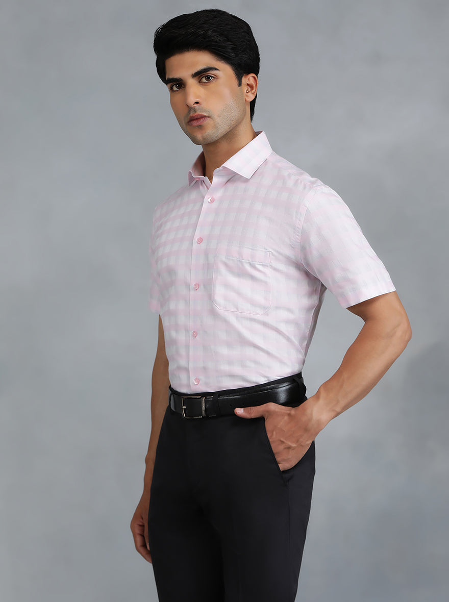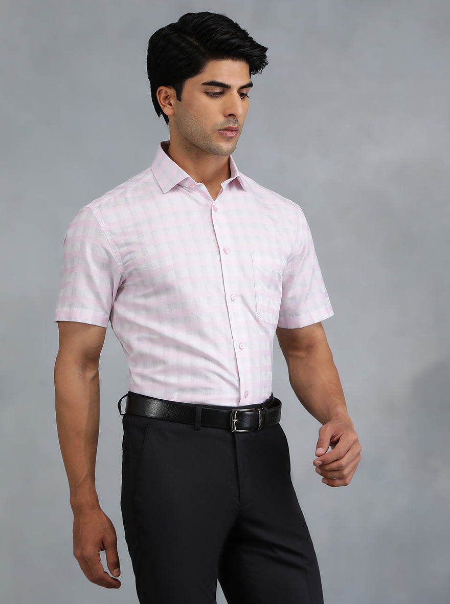 Pink Checked Regular Fit Formal Shirt | Greenfibre