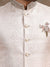 Details: Experience the pinnacle of elegance with TULA's Pink Silk Jacquard Jodhpuri Suit. This sophisticated ensemble is tailored in a regular fit, featuring full sleeves and a classic straight cut, offering a timeless silhouette that highlights traditional charm with modern appeal. The luxurious silk jacquard fabric provides a rich texture, ensuring you look and feel your best at any event. The suit is adorned with exquisite embroidery, including Zardosi, Thread, Cutdana, and Moti work, meticulously crafted to offer a stunning visual appeal. These intricate details make it a standout piece, perfect for special occasions such as sangeet ceremonies, receptions, ring ceremonies, and even as stylish attire for wedding sideline events. The mandarin collar adds a contemporary twist to the traditional Jodhpuri design, making it an ideal choice for those who appreciate a blend of modern and classic fashion. With TULA's Pink Jodhpuri Suit, you can be assured of making a sophisticated statement, exuding confidence and style with every appearance