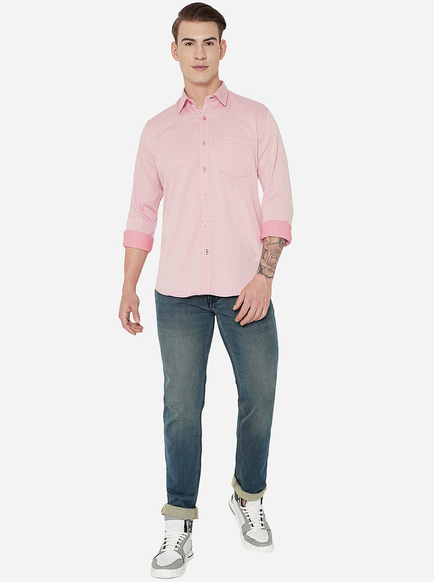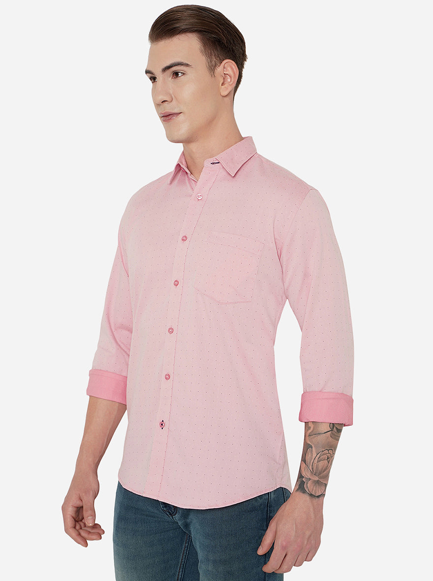 Pink Printed Slim Fit Casual Shirt | JadeBlue
