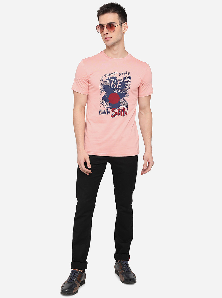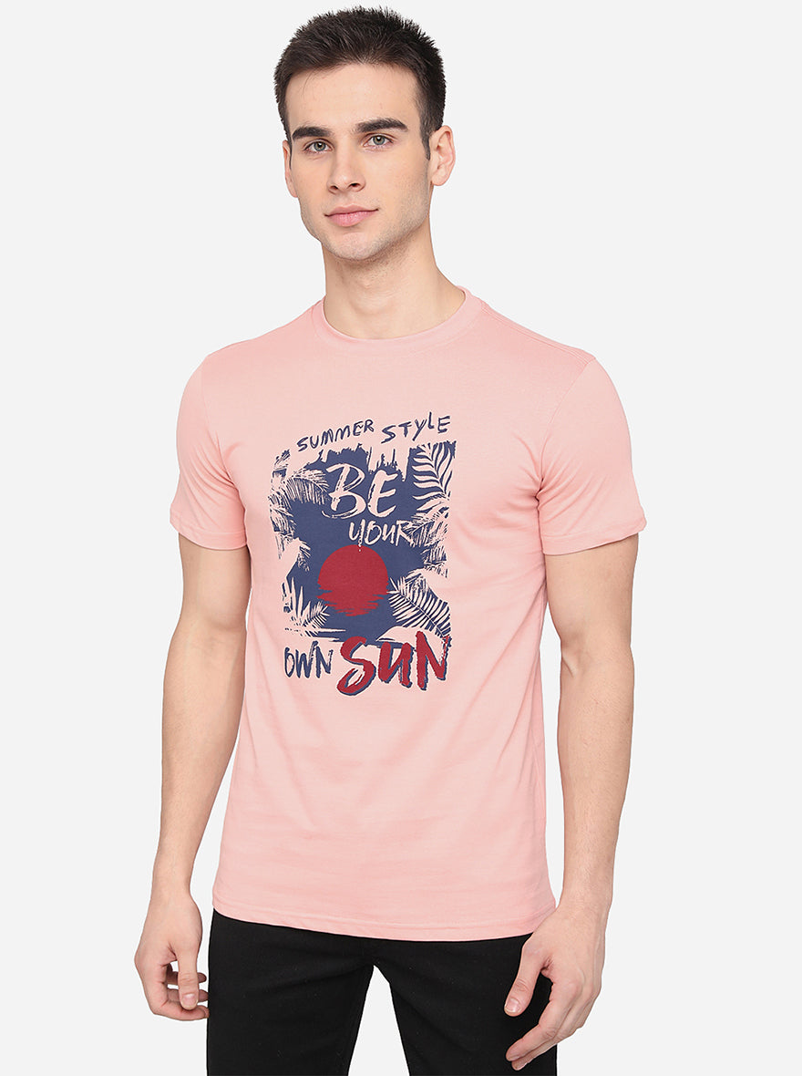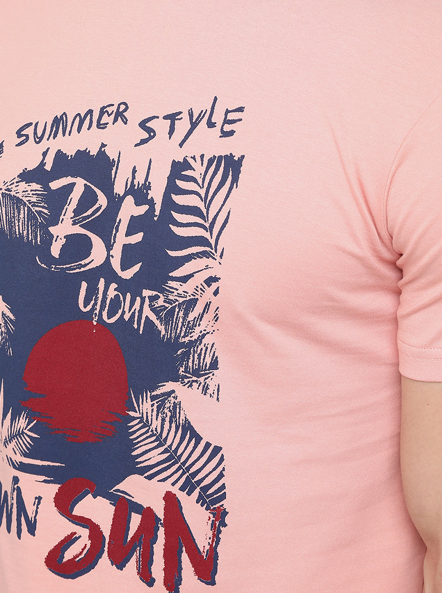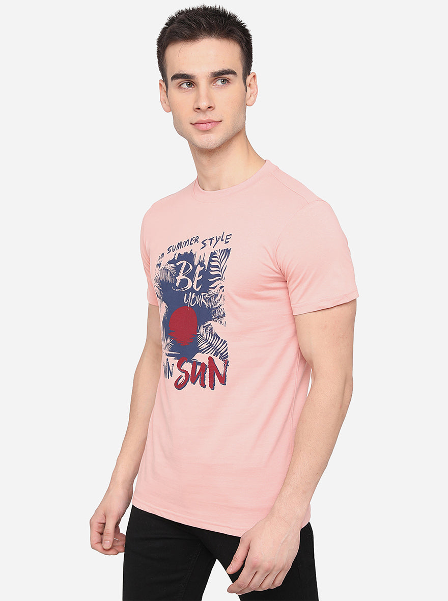 Pink Printed Slim Fit T-Shirt | Greenfibre