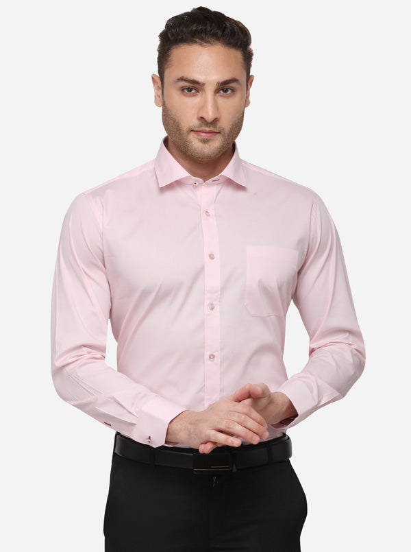 Pink Solid Slim Fit Formal Shirt | Metal