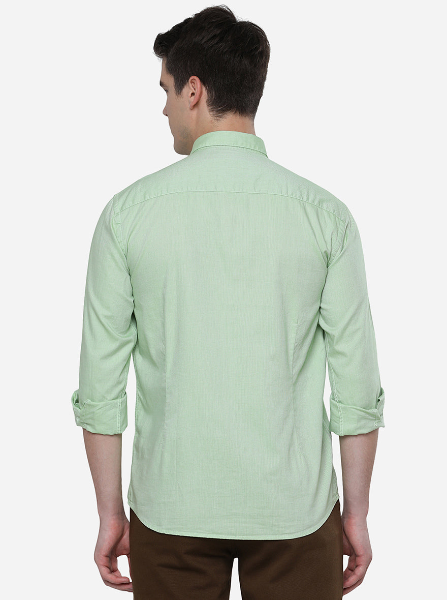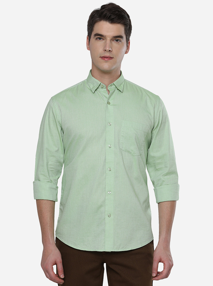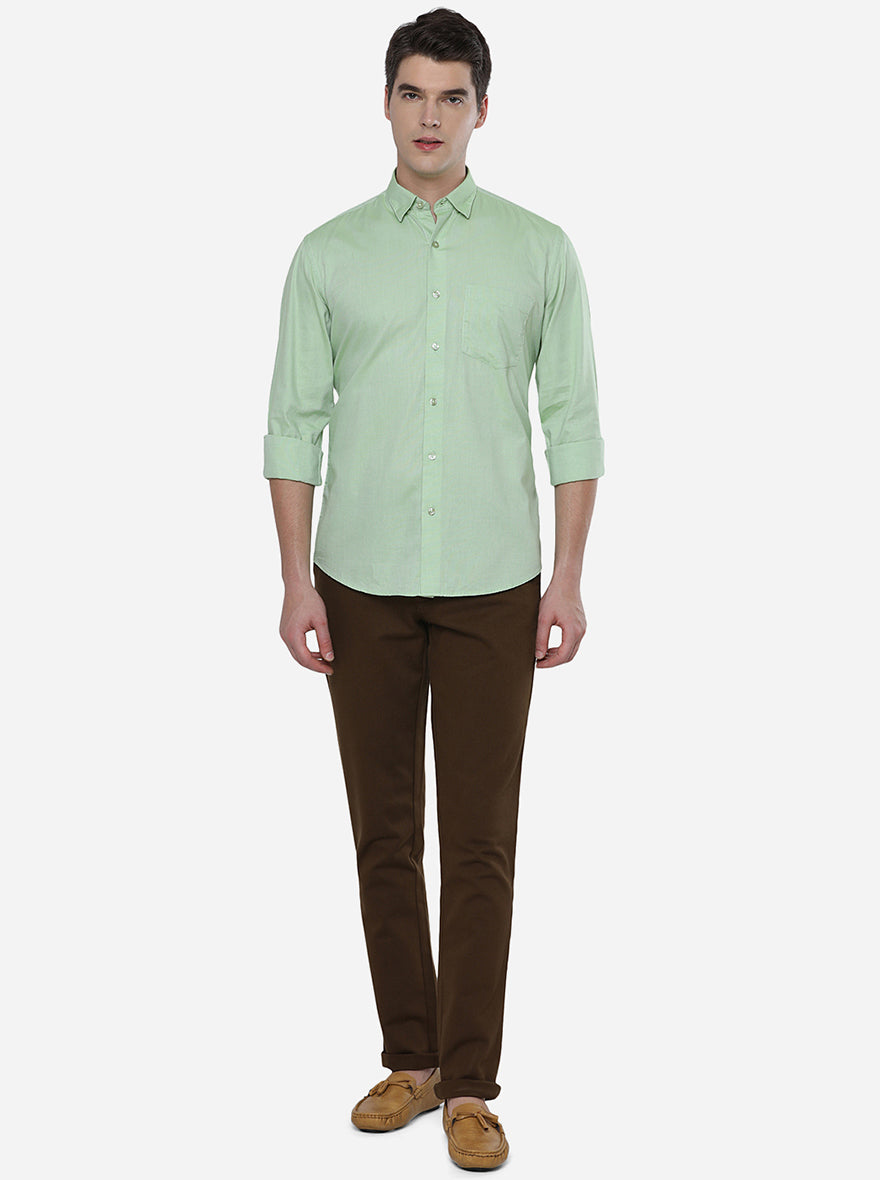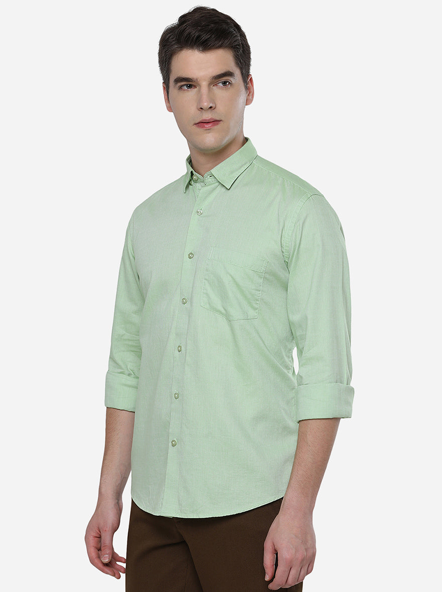 Details: Opt for this solid pista green casual shirt and dress up in utmost style. Designed by JadeBlue, this slim fit casual shirt is made from breathable cotton fabric, which lets your skin breathe comfortably all through the day. This attractive shirt features spread collar, full sleeves, buttoned cuffs, chest pocket, front buttons placket and curved hem.Team this shirt with beige casual trousers, watch and loafers to achieve a stunning casual look in no time. Own this captivating casual wear now and stay fashionable all the times.