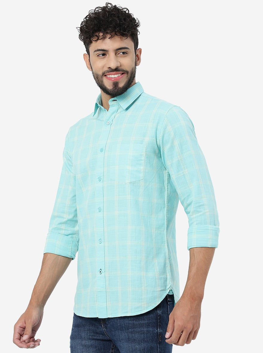 Pool Blue Checked Slim Fit Casual Shirt | JadeBlue