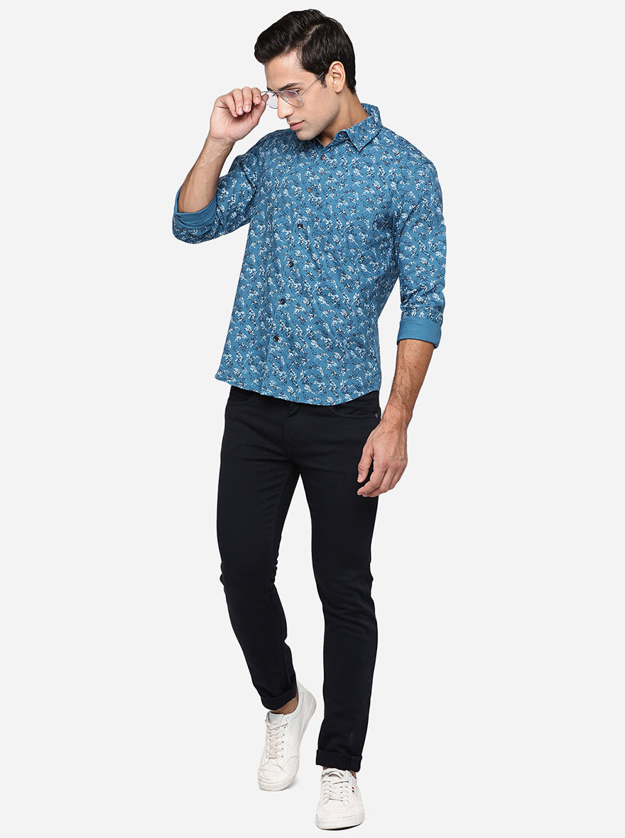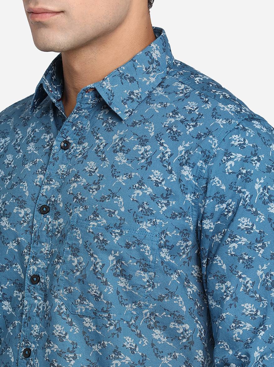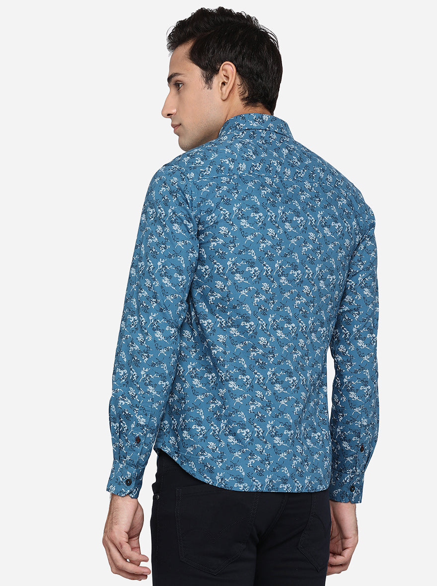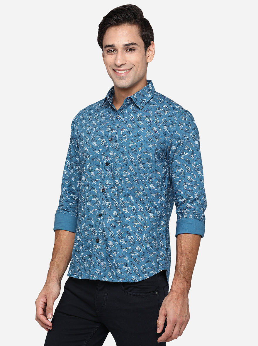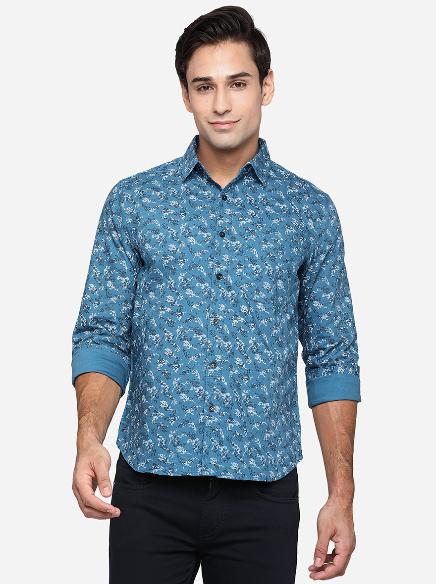 Provincial Blue Printed Slim Fit Semi Casual Shirt | Greenfibre