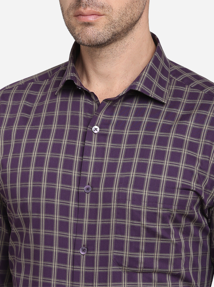 Purple & Cream Checked Slim Fit Formal Shirt | Metal