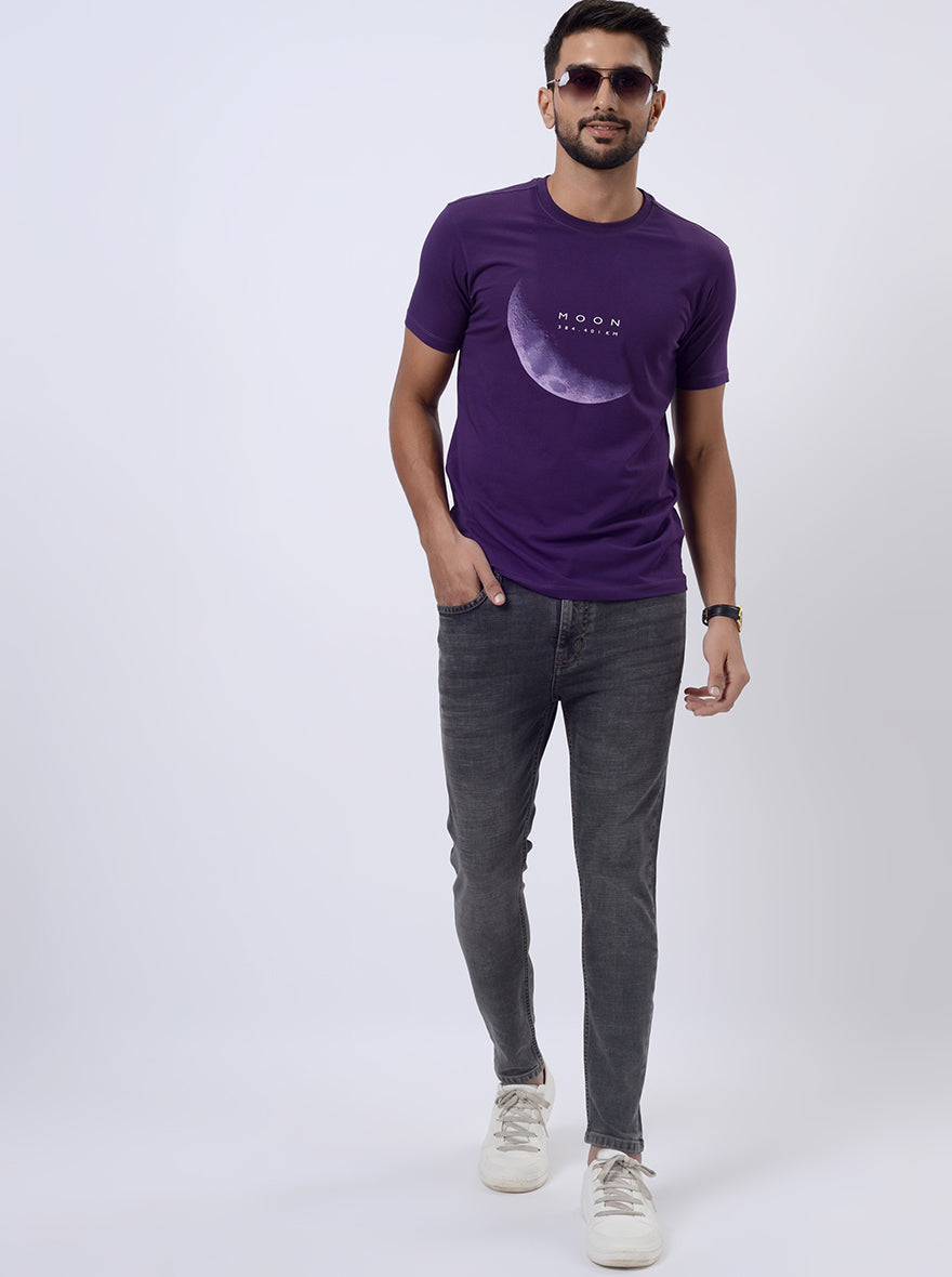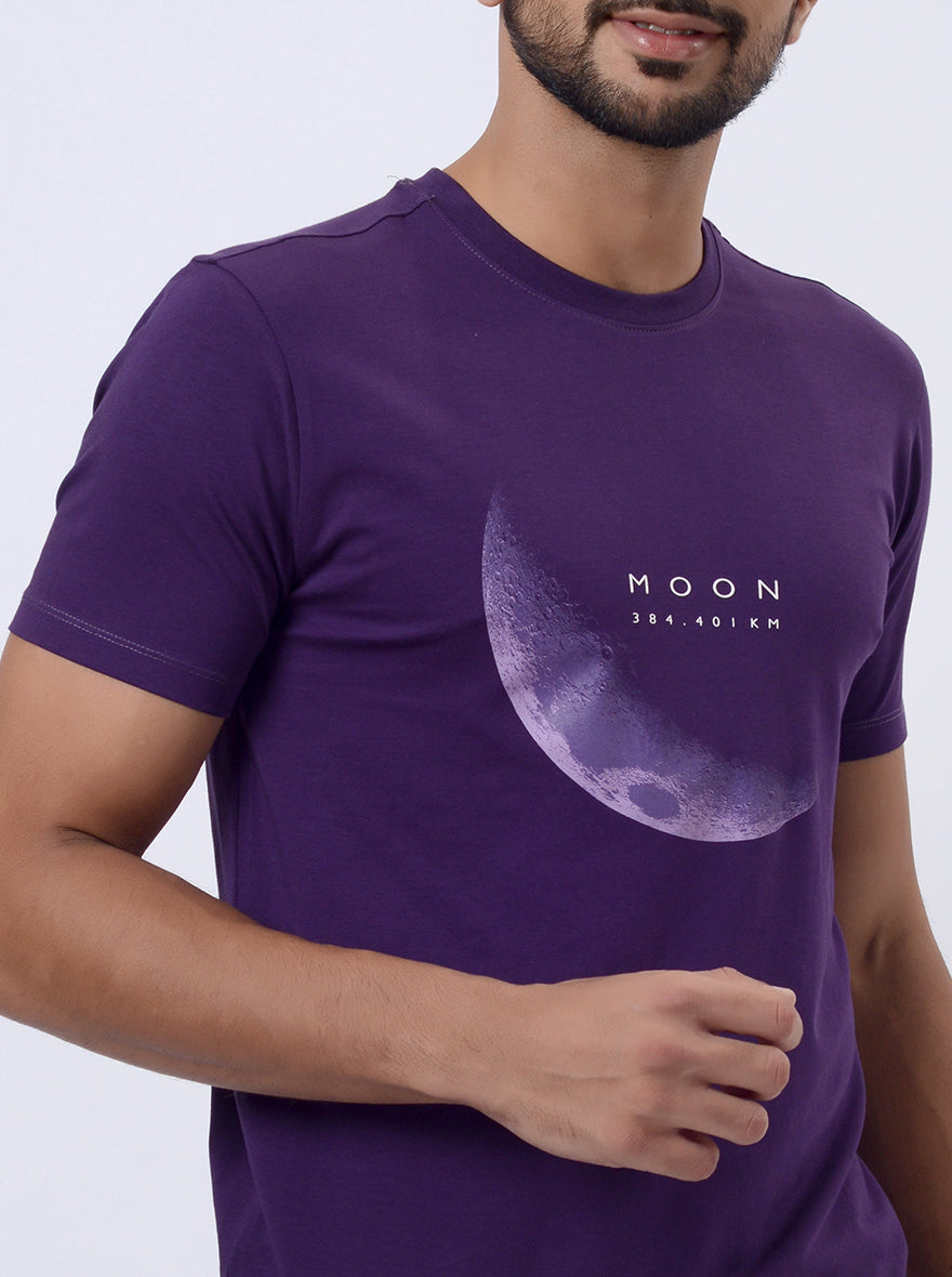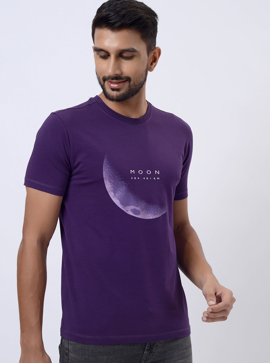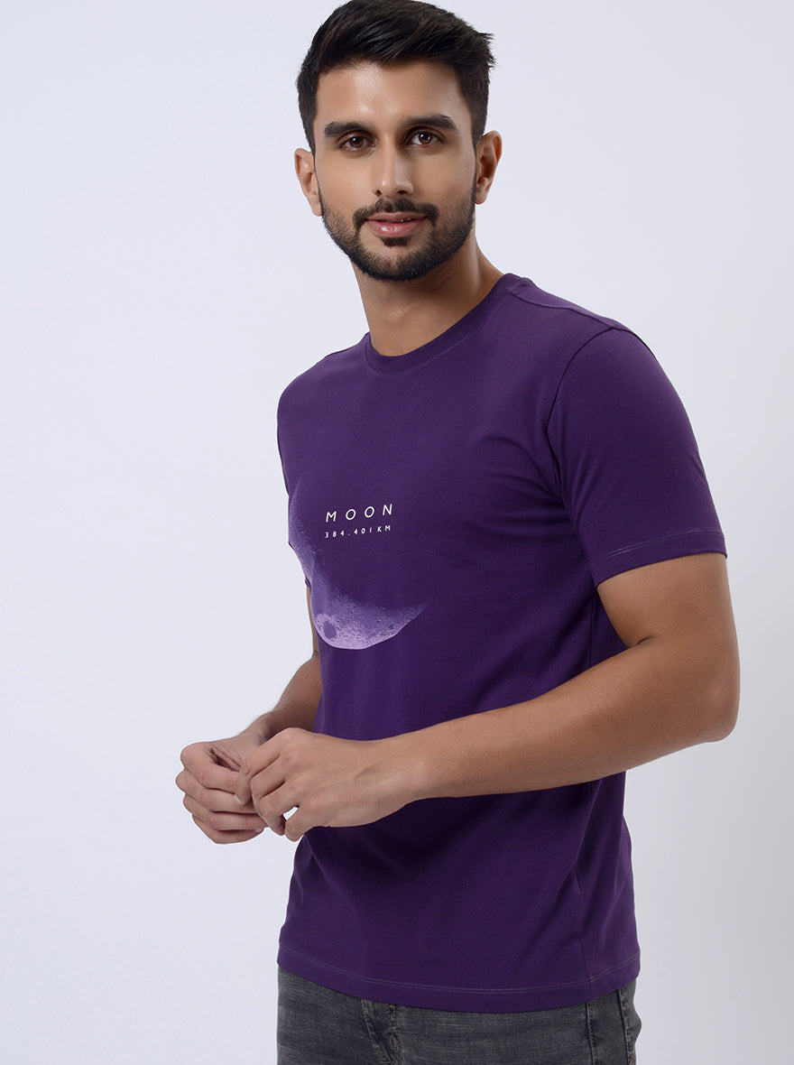 Purple Printed Slim Fit T-Shirt | JadeBlue