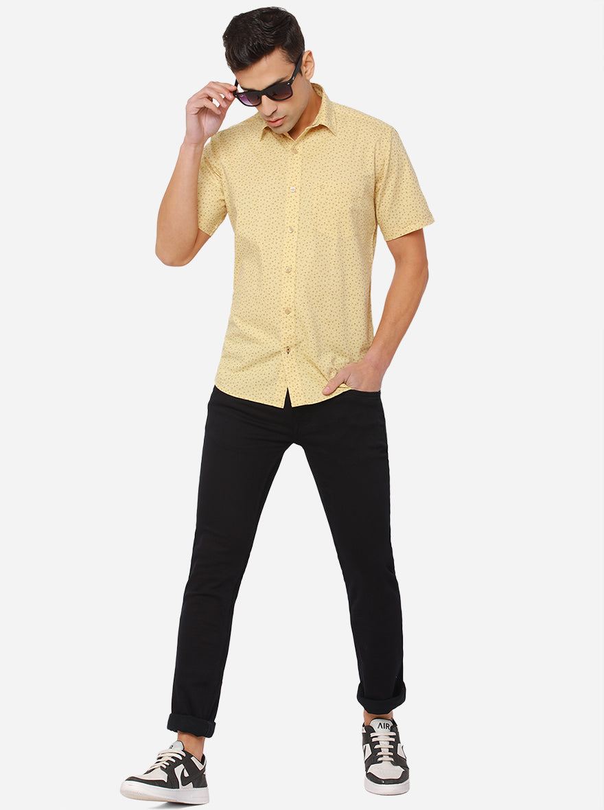 Details: Amp up your casual wear collection wearing this Yellow Shirt from the latest collection of Greenfibre. It features a shirt collar, button placket, half-sleeves and offers a slim-fit. It is adorned with a printed pattern, which makes it a best pick. Perfect for semi-casual wear or weekend wear. Crafted with pure cotton, it allows a great comfort and a great breathability during long hours. Team it with your favorite pair of denim and sneakers to complete the look.