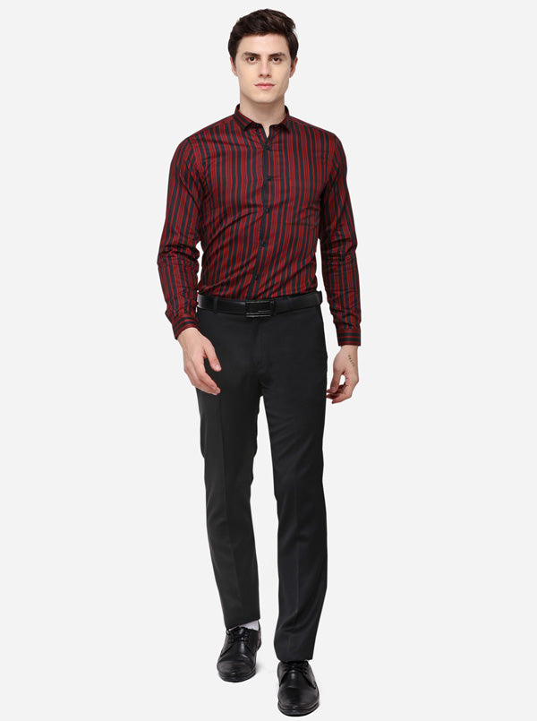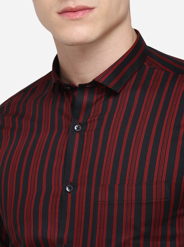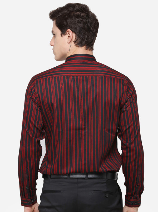 Red & Black Striped Regular Fit Formal Shirt | Greenfibre