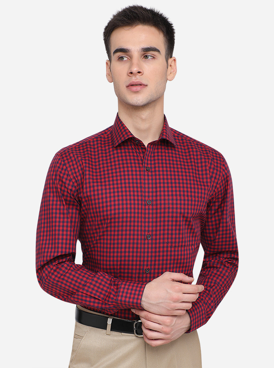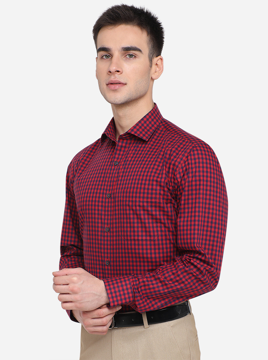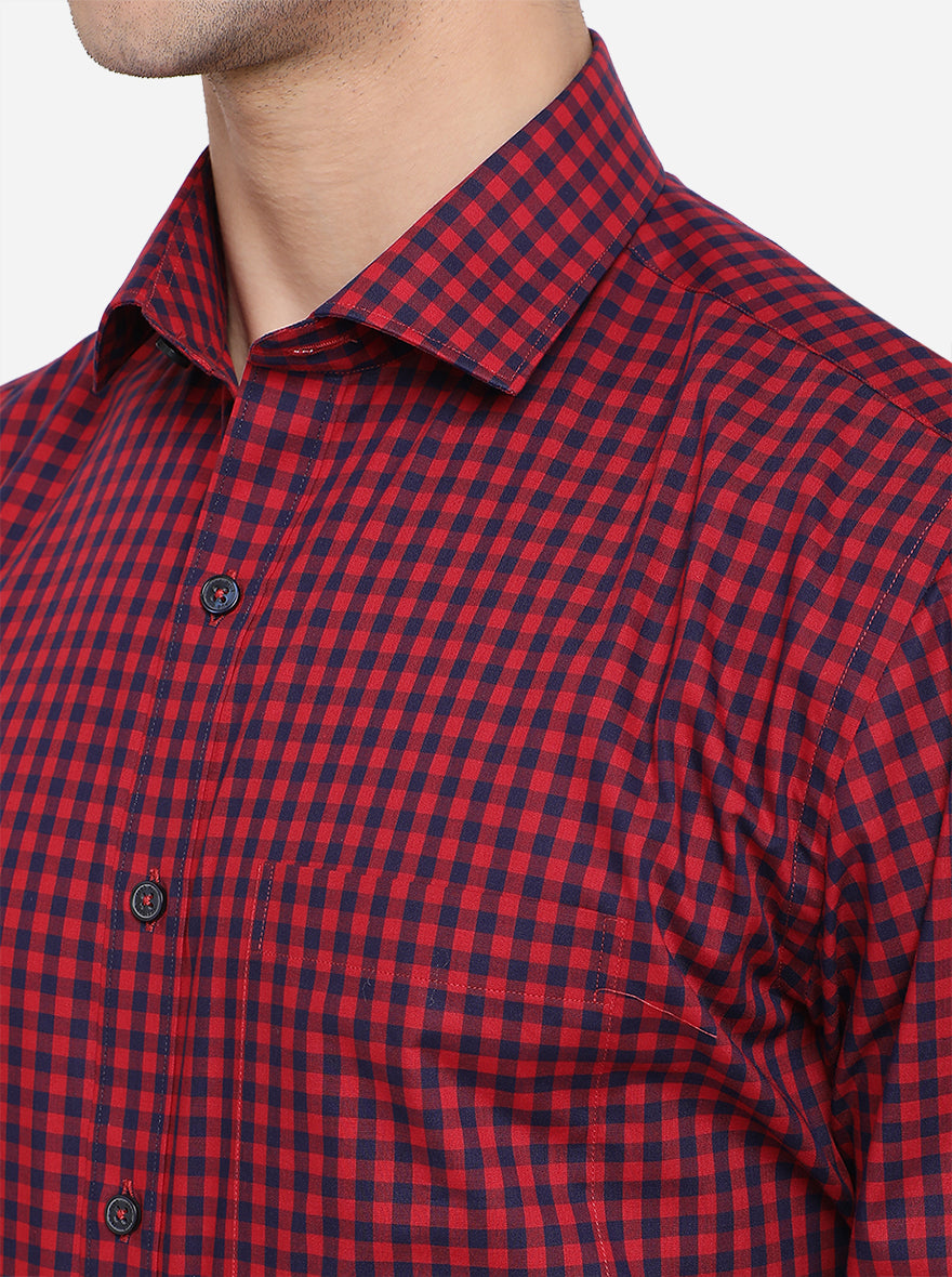 Red & Blue Checked Regular Fit Formal Shirt | JadeBlue