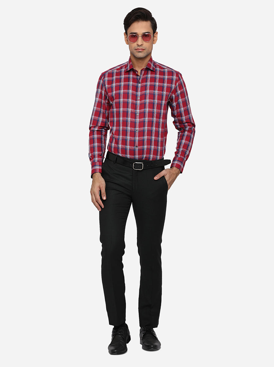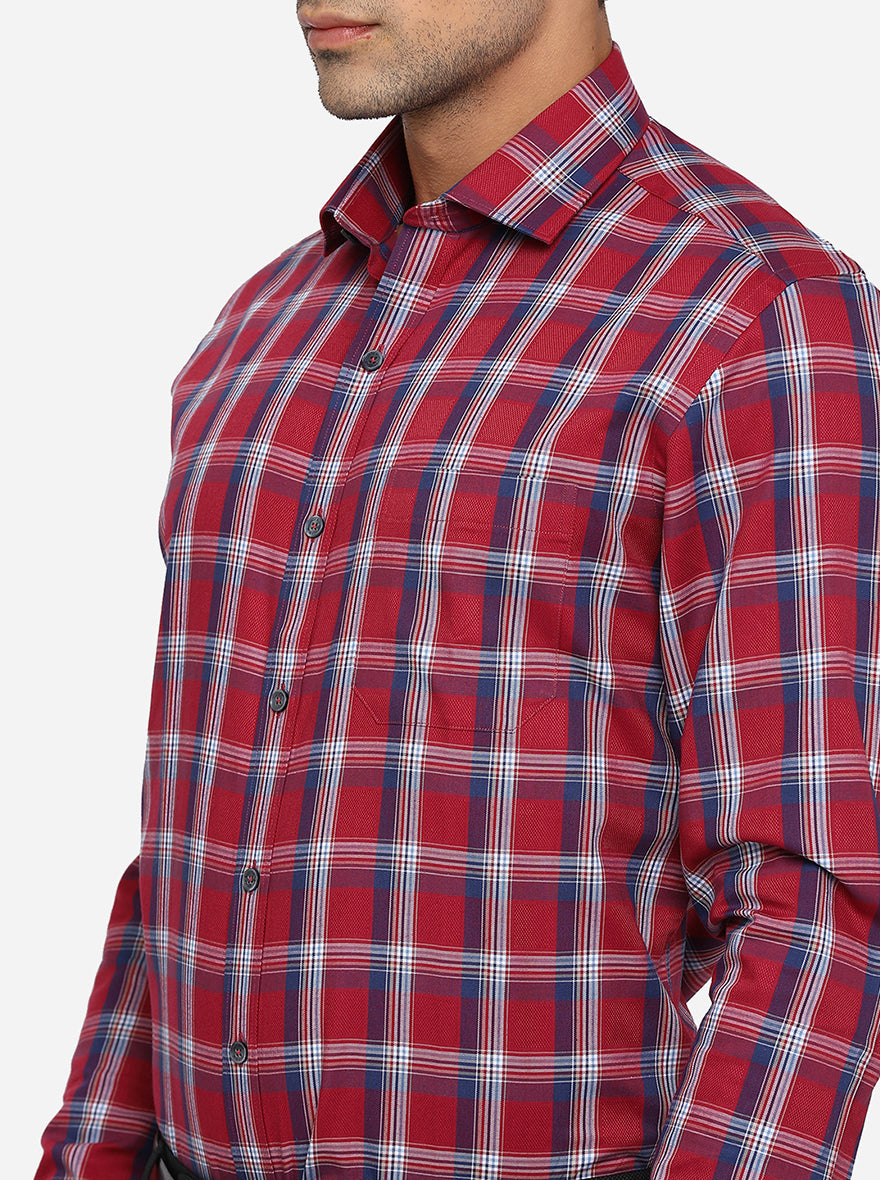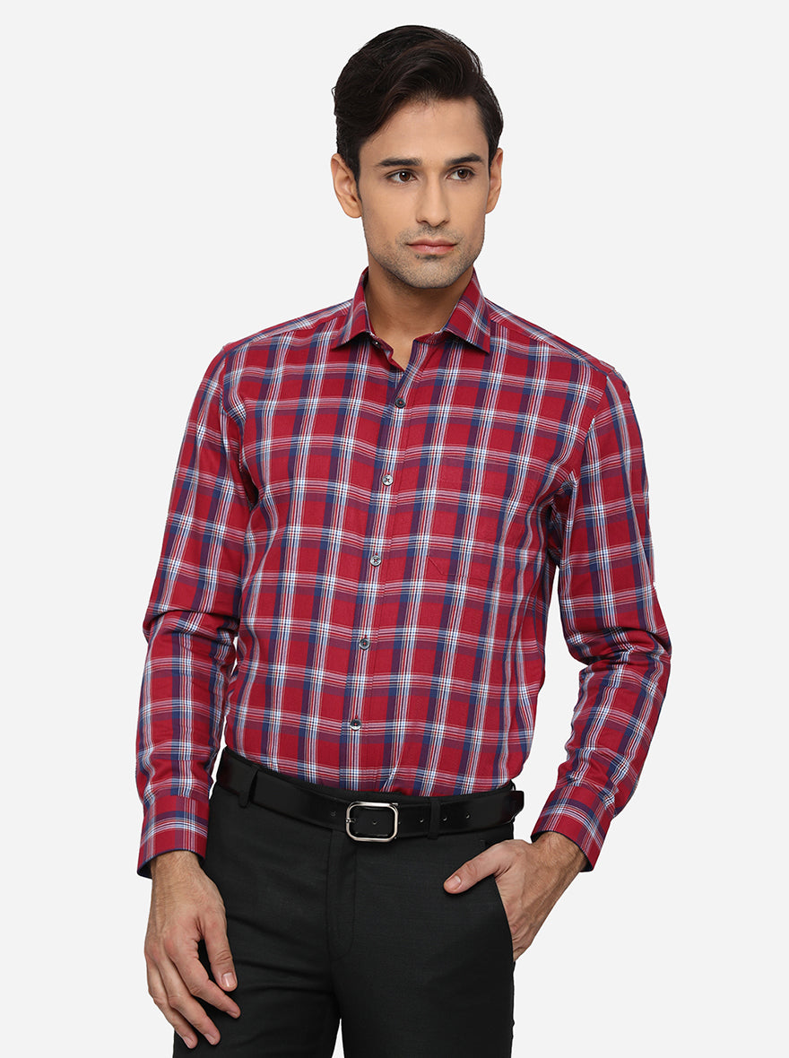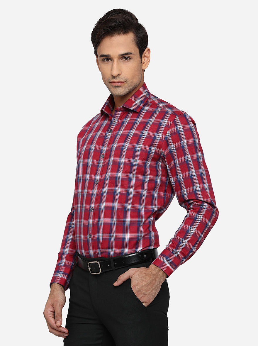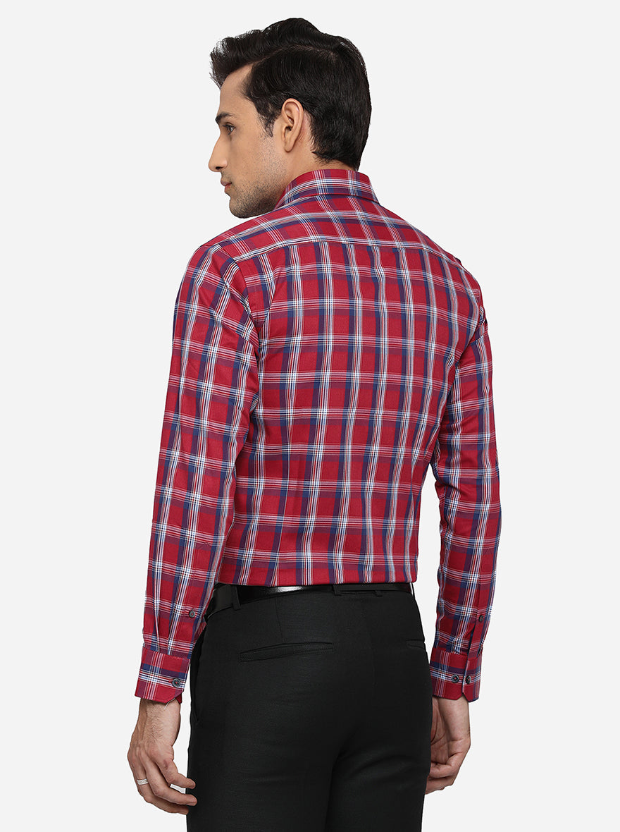 Red & Blue Checked Slim Fit Formal Shirt | JadeBlue