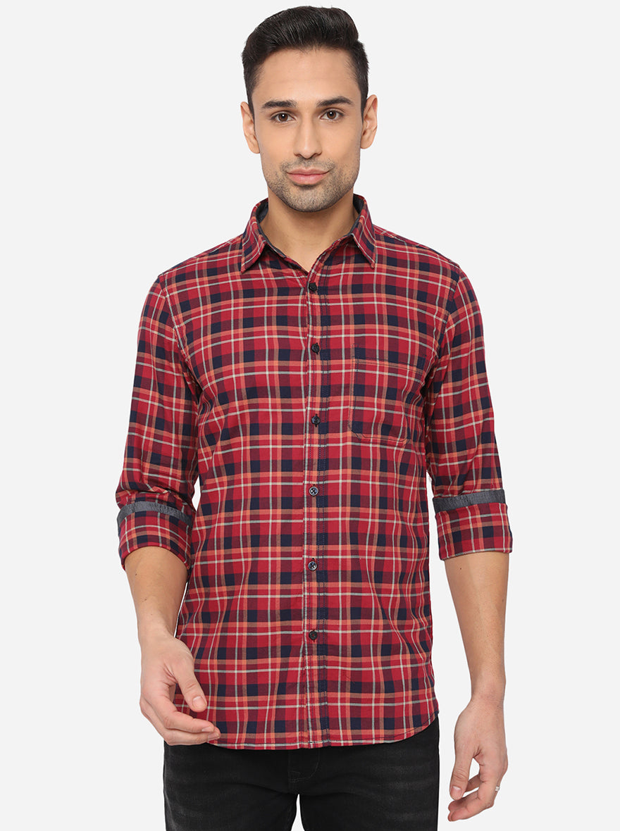 Details: Allow yourself a fashionable look wearing this Red and Blue Shirt from the latest collection of JadeBlue Sport. It features a shirt collar, button placket, full-sleeves and offers a slim-fit. It is adorned with a checked pattern, making up for a classy choice. Perfect for semi-casual wear or weekend wear. Crafted with pure cotton, it promises a soft touch against the skin and a comfort like no other. Team it with a well-fitted blue denim and smart sneakers to create a stylish attire.