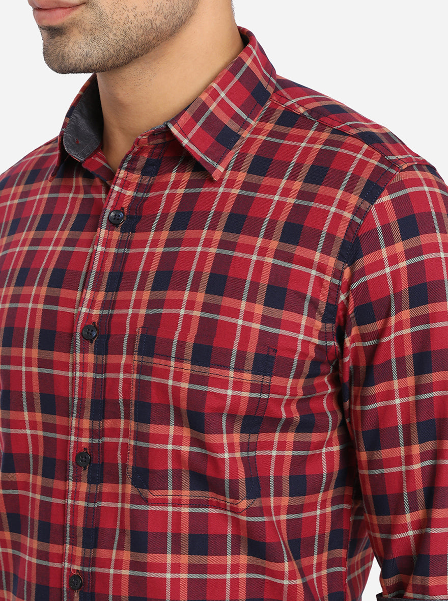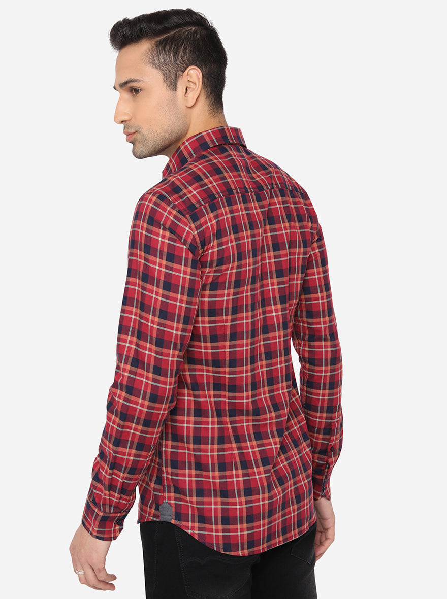 Red & Blue Checked Slim Fit Semi Casual Shirt | JadeBlue