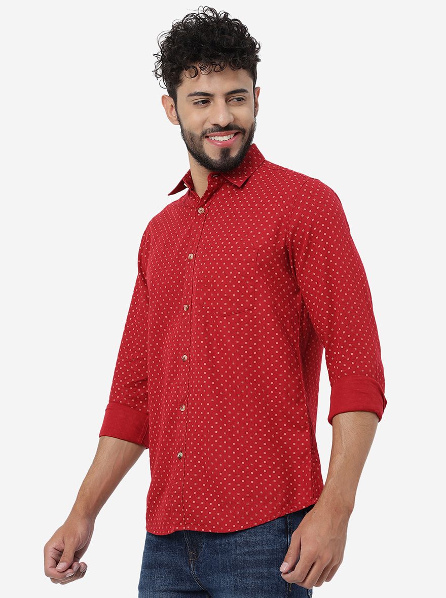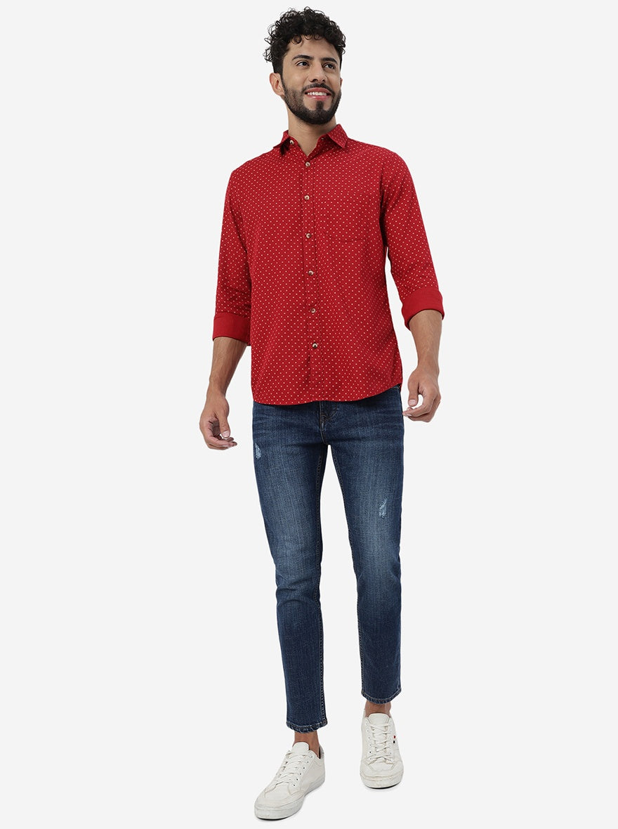 Red Printed Slim Fit Casual Shirt | JadeBlue