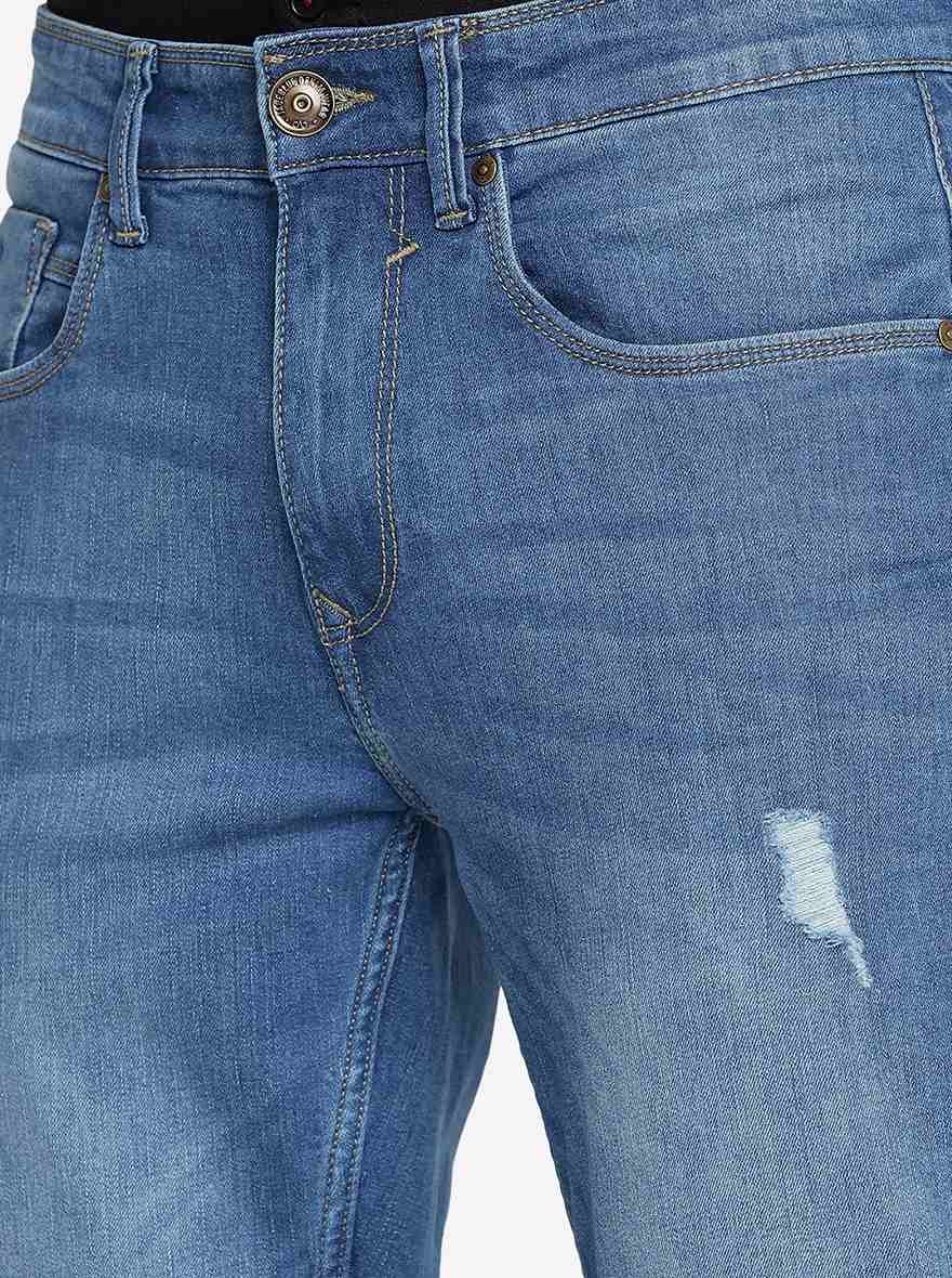Details: This JadeBlue Men's River Blue Jeans is made with Cotton Stretch fabric ensuring comfort, breathability, and excellent stretchability all day. Offers a Mid Rise waist with a Slim fit and a flat front for a sleek look that has been elevated with a Washed pattern. Features pockets, zipper, and button for closure. Match it with a T-shirt of your choice and a pair of canvas for an iconic look. Perfect for casual looks.