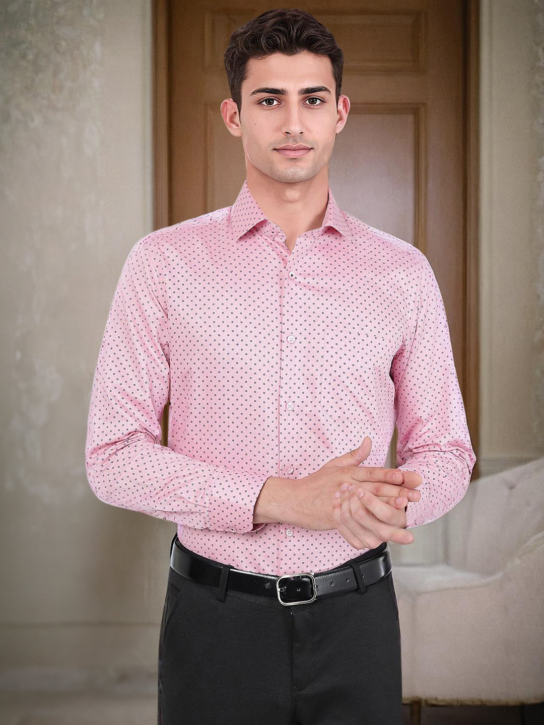 Pink Printed Slim Fit Formal Shirt | Greenfibre