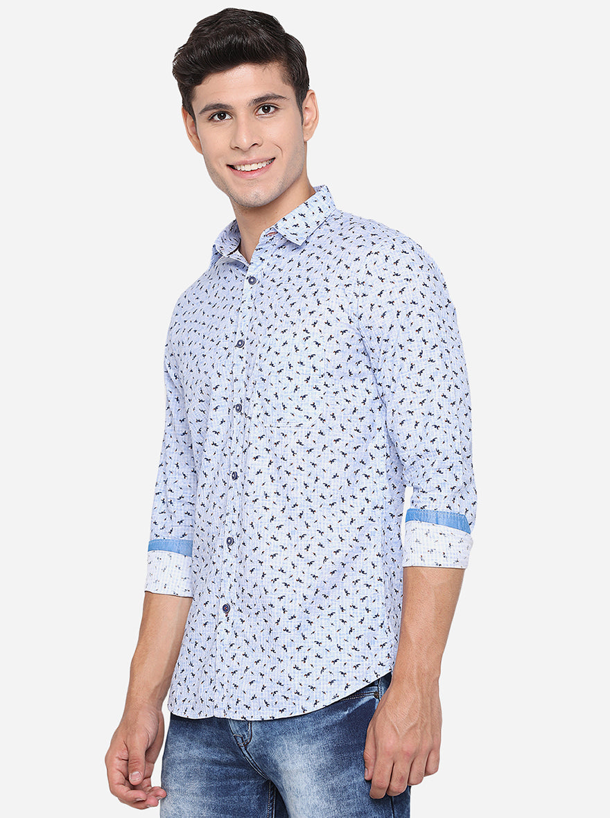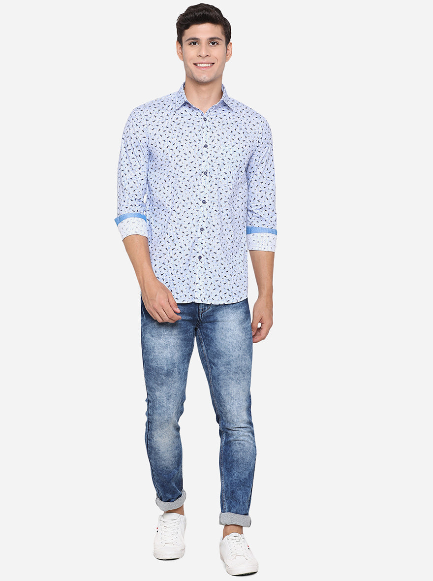 Details: Splash some color to your shirts closet by getting yourself this stunning Rivera Blue Shirt from the latest collection of JadeBlue Sport. It features a shirt collar, full-sleeves and offers a slim-fit. It is adorned with a printed pattern, making up for a dapper choice. Has a pocket on front. Perfect for casual wear or weekend wear. Crafted with pure cotton, it promises a soft touch against the skin and a comfort like no other. Team it with a well-fitted blue denim and white sneakers to create a stylish attire.