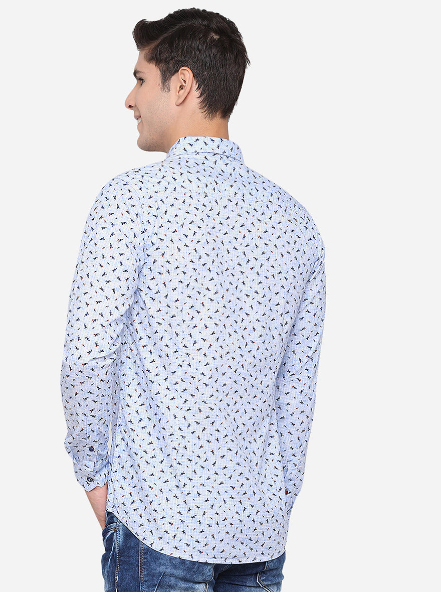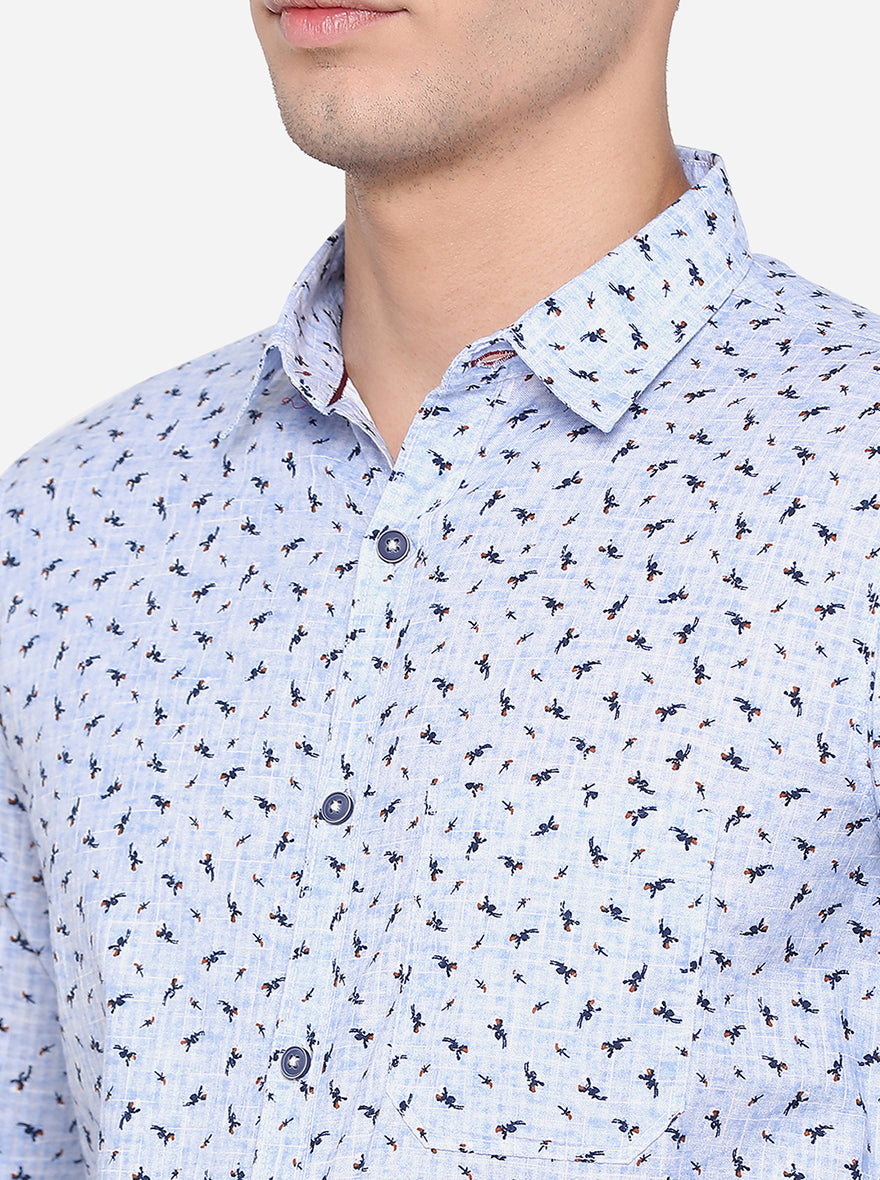 Rivera Blue Printed Slim Fit Semi Casual Shirt | JadeBlue