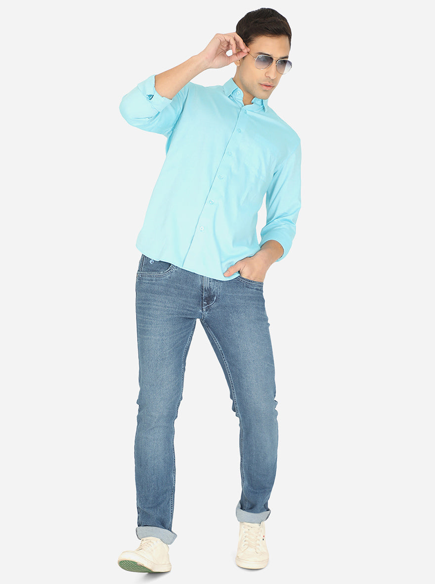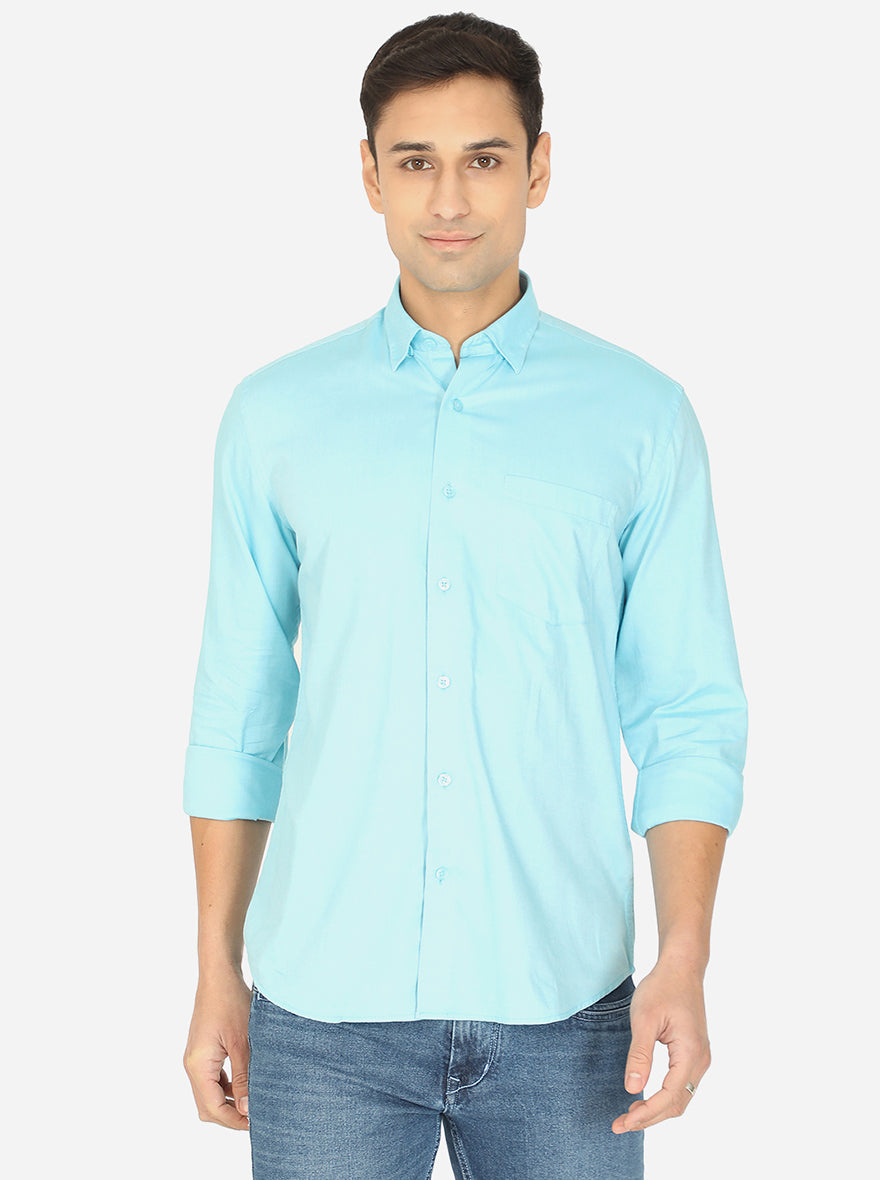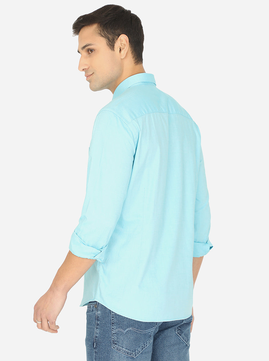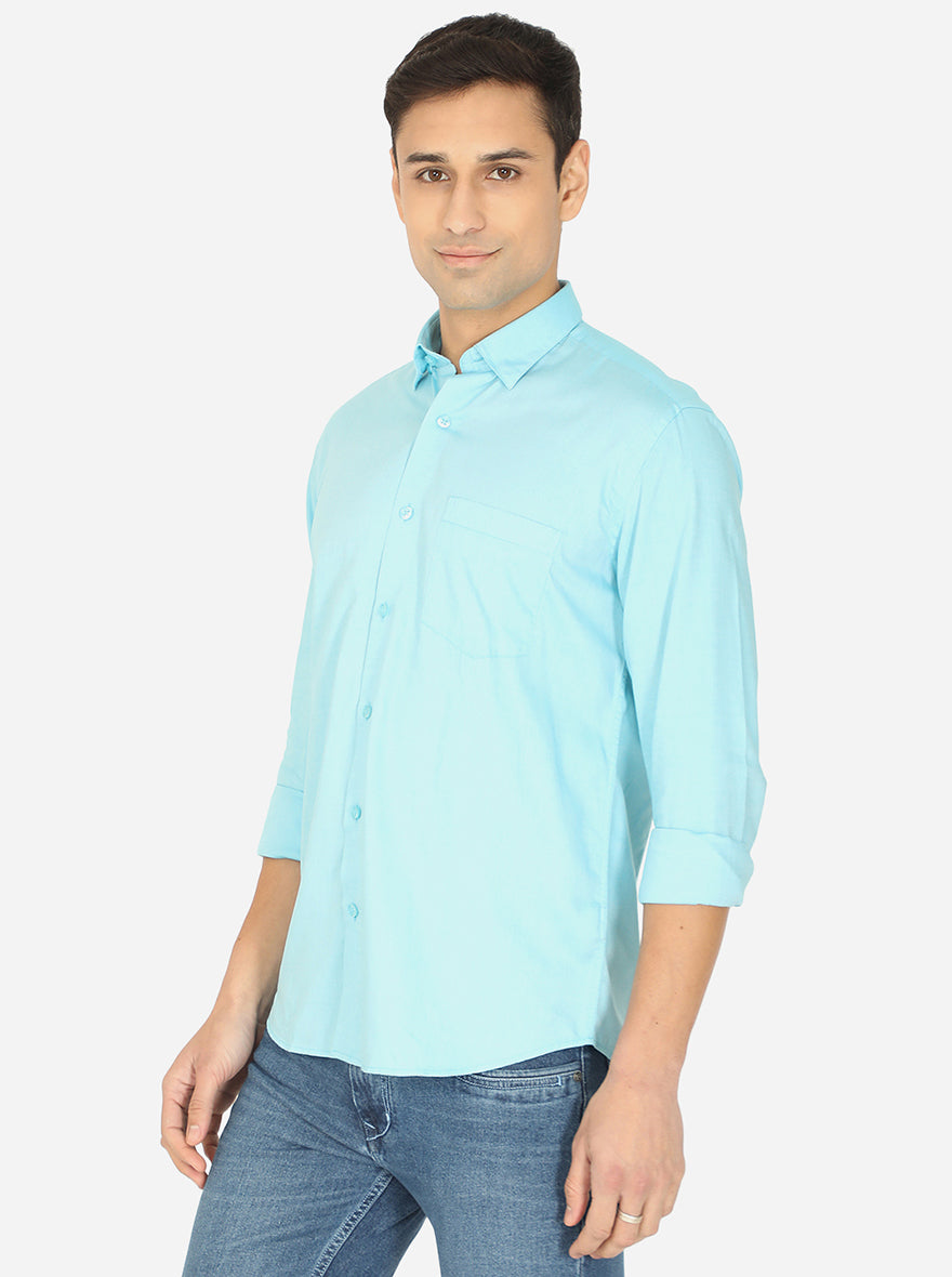 Riveu Blue Solid Slim Fit Casual Shirt | JadeBlue