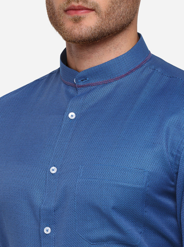 Details: This plain blue mens shirt is a perfect blend of comfort and style. Made from breathable Poly cotton fabric, this slim fit shirt features classic collar, chest pocket and front buttons. It is teamed with semi-formal trousers. incorporate style and comfort into your formal collection by opting for this Self design blue shirt. Made from finest quality of Poly cotton fabric, this slim fit shirt features standard features like classic collar, chest pocket and front buttons for comfy closure.Made to perfection from premium Poly cotton fabric, this slim fit mens shirt features classic collar, chest pocket and Full sleeve. It offers all-day comfort. Opt for this must-have piece & it offers super relaxation. Revamp your formal shirt collection today by adding this blue mens formal shirt to it.