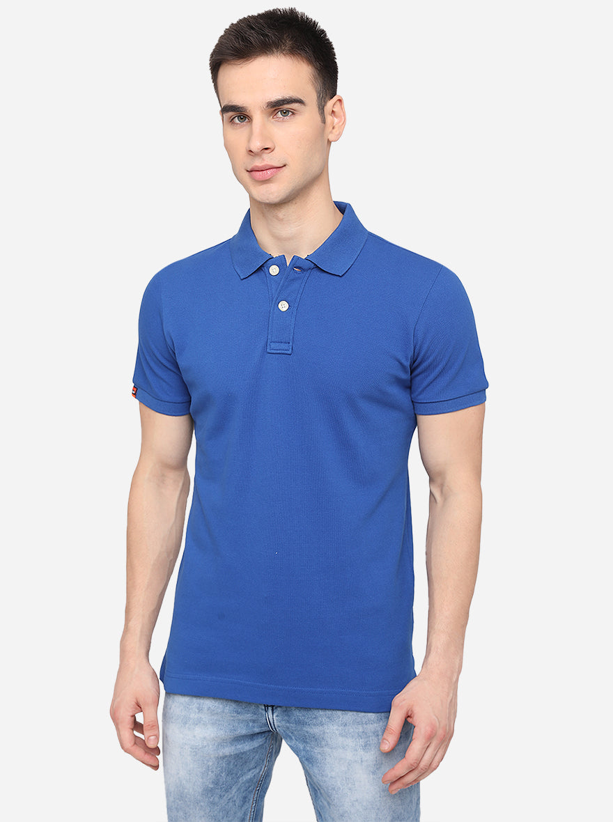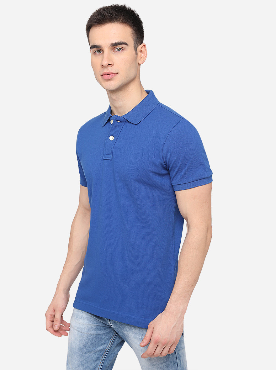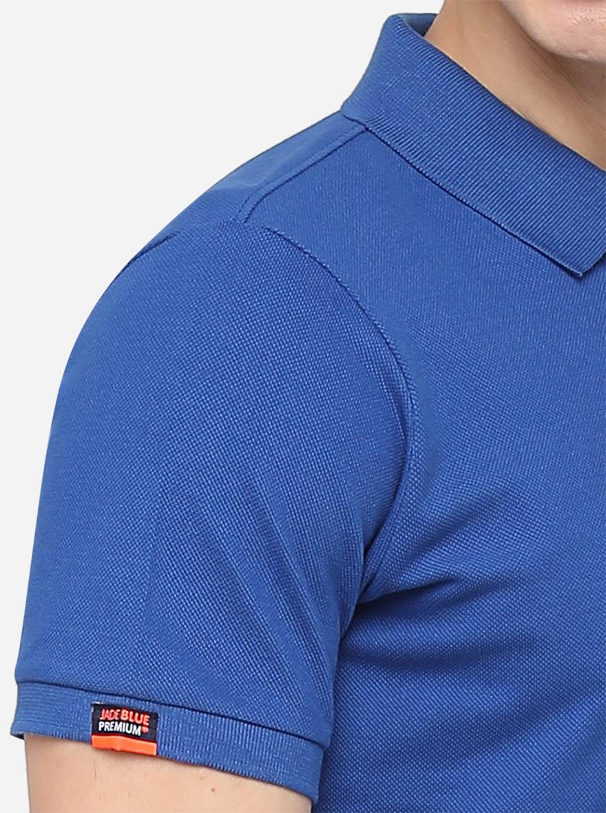 Royal Blue Solid Slim Fit Polo T-Shirt | JadeBlue