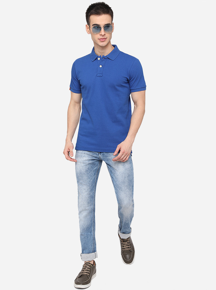 Details: Get ready for the weekend getaway with your friends dressing up in this Royal Blue Polo T-shirt from the latest collection of JadeBlue. It features a polo neck, half-sleeves and two buttons on the front. It is tailored to a slim-fit. Decked with a solid pattern, it makes up for a timeless choice. Crafted with pure cotton, it promises the utmost comfort and soft touch against the skin during long hours. Perfect for casual wear or weekend wear. Complete the outfit by tagging it with a pair of well-fitted solid denim jeans and white sneakers for the win.