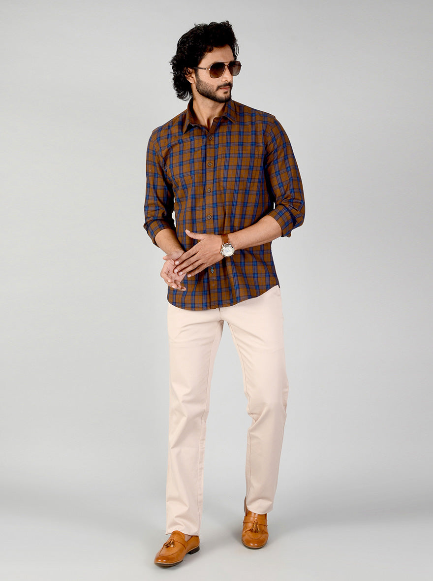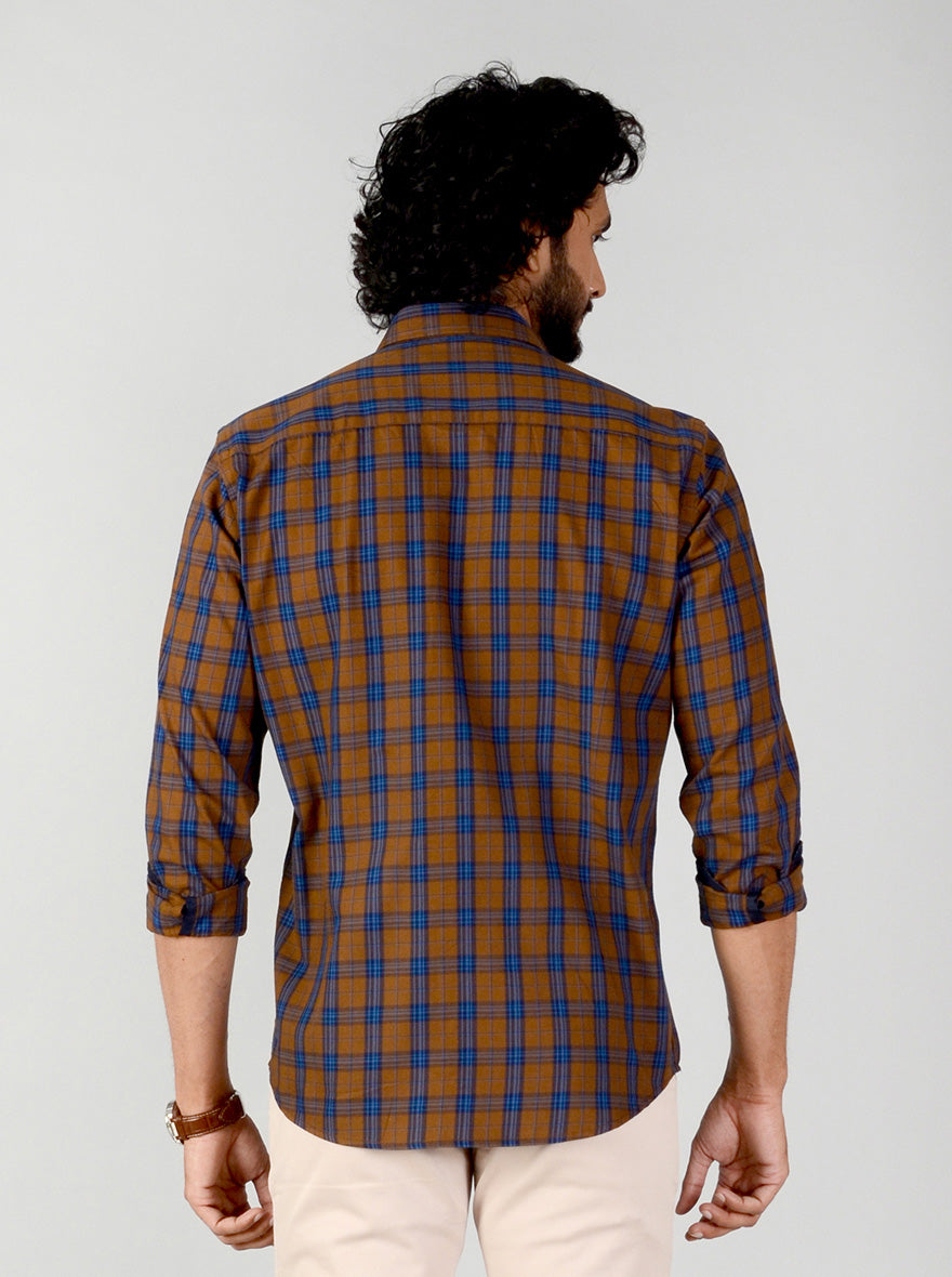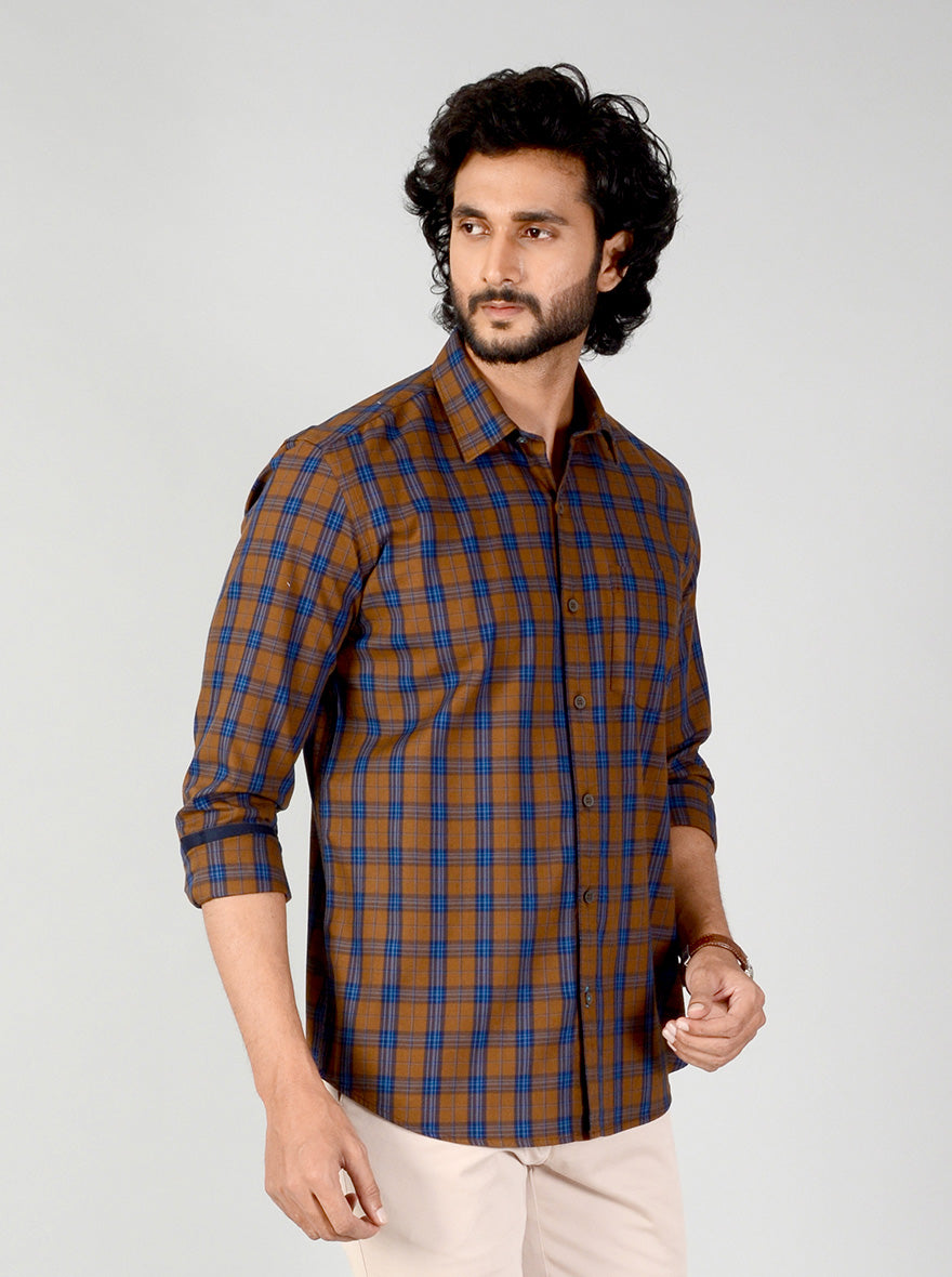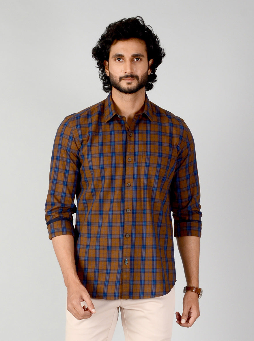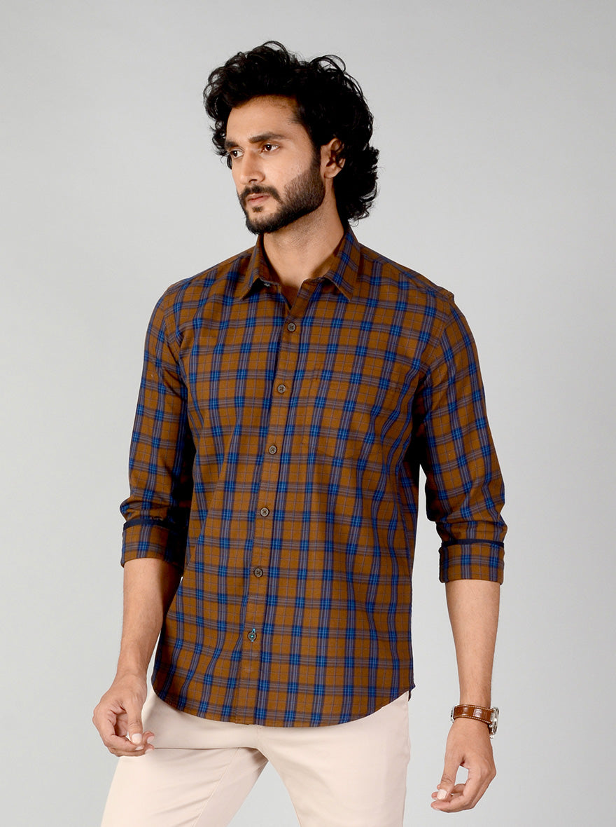 Rubber Brown Checked Smart Fit Casual Shirt | Greenfibre