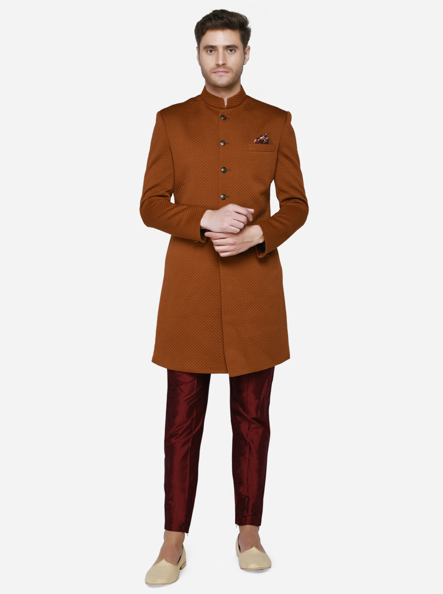 JadeBlue brings to you these rust Mid Length Jacket for men is stitched meticulously. This Polynosic has been designed keeping in mind the latest trends in a casual fashionEngineering garments which fit all body types and style is our aim. These Mid Length Jacket are of multi utility, it can be used formal event, or waist coat for men.