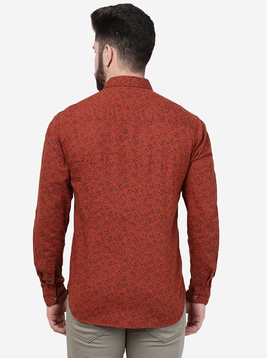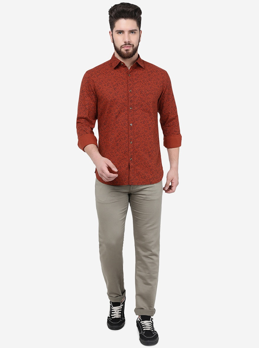 Rust Printed Slim Fit Casual Shirt | Greenfibre