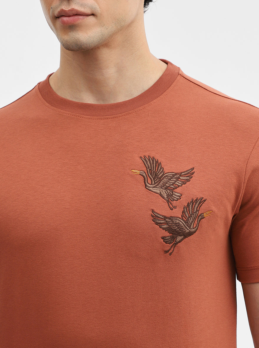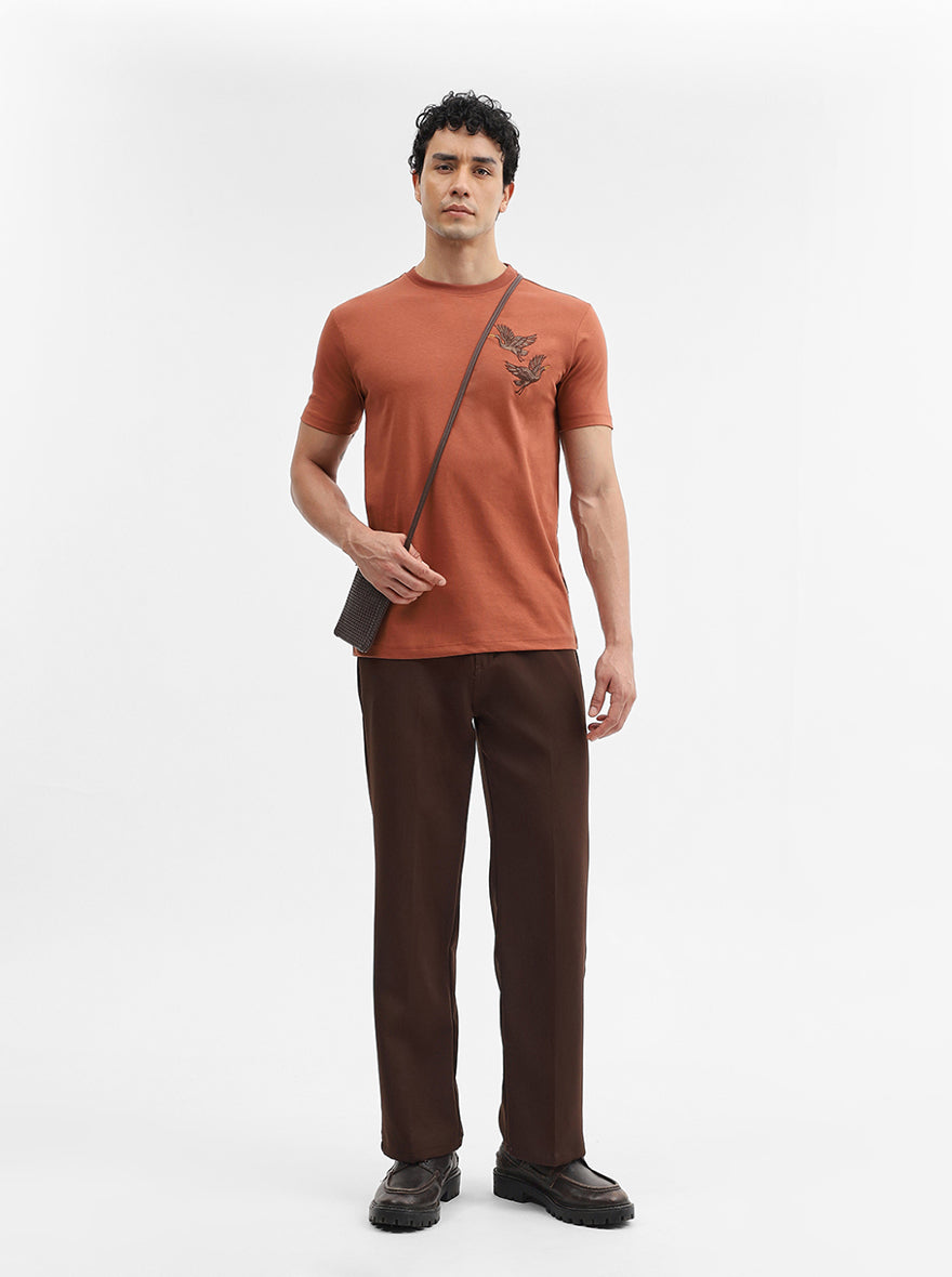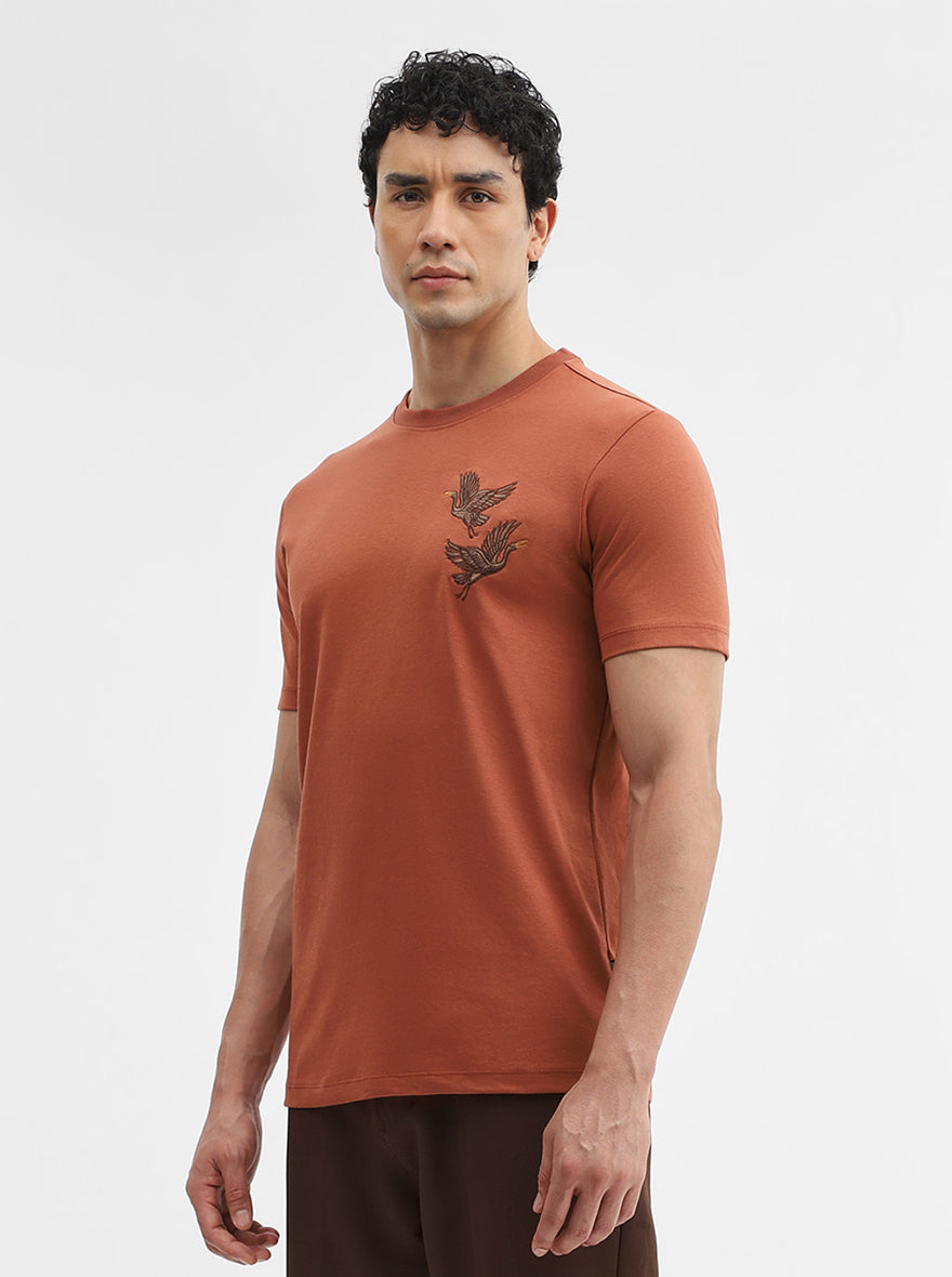 Rust Printed Slim Fit T-Shirt | JadeBlue