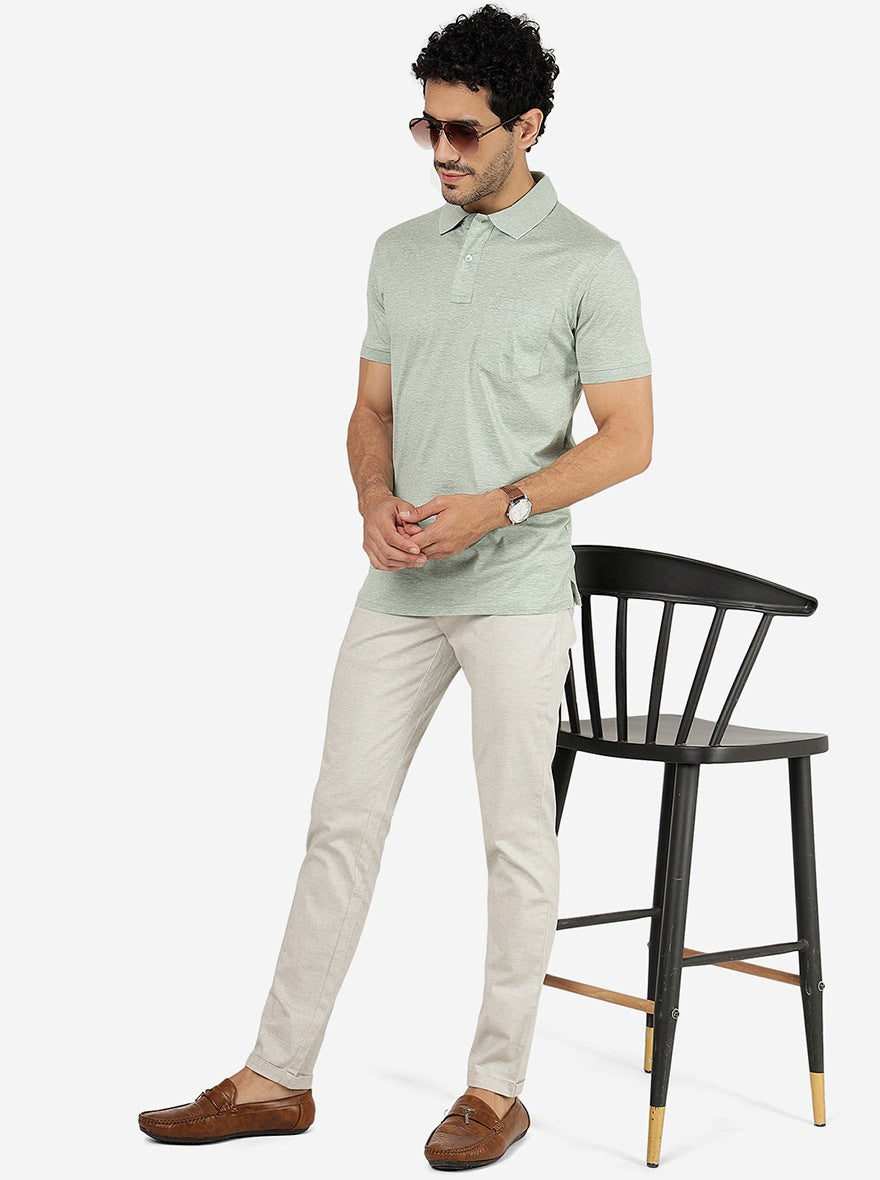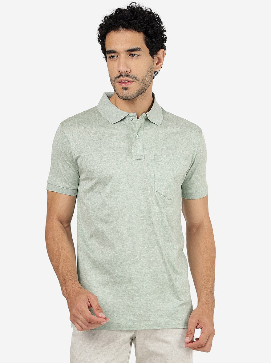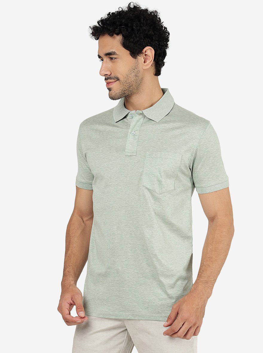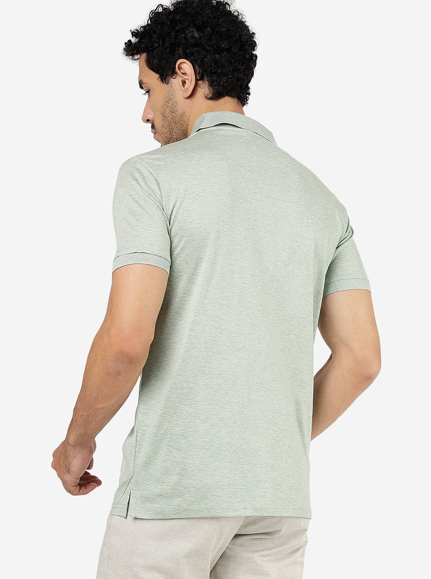Sage Green Solid Slim Fit Polo T-Shirt | JadeBlue
