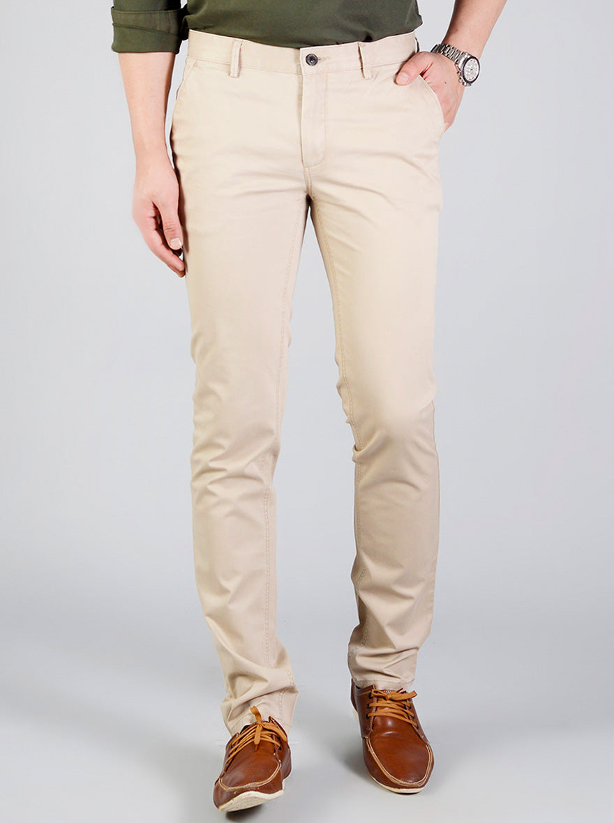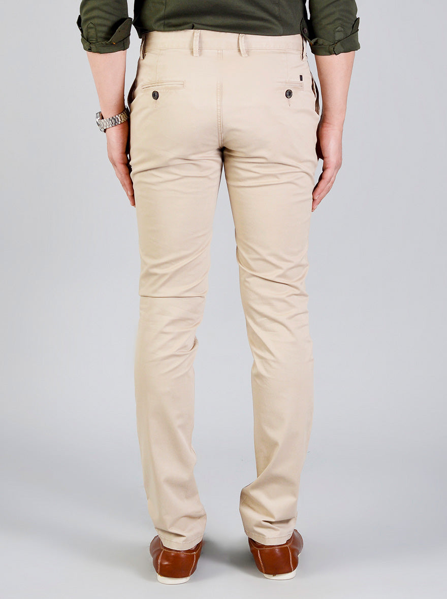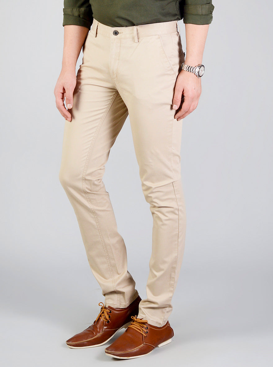 Details: Give a fashionable update to your trousers collection by adding this trendy pair of beige casual trousers to it. Made from cotton stretch fabric, this slim fit trousers feature belt loops, zip fly, single button closure and 4 functional pockets.