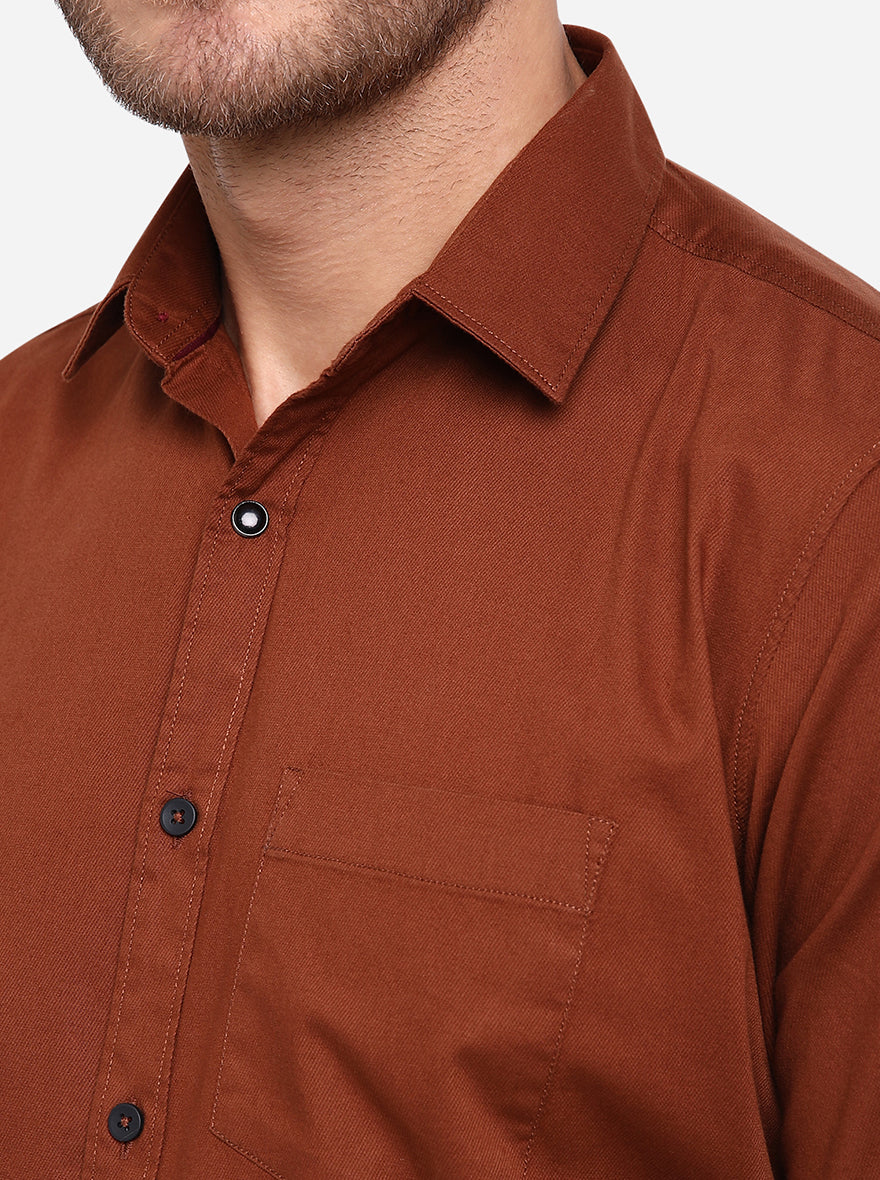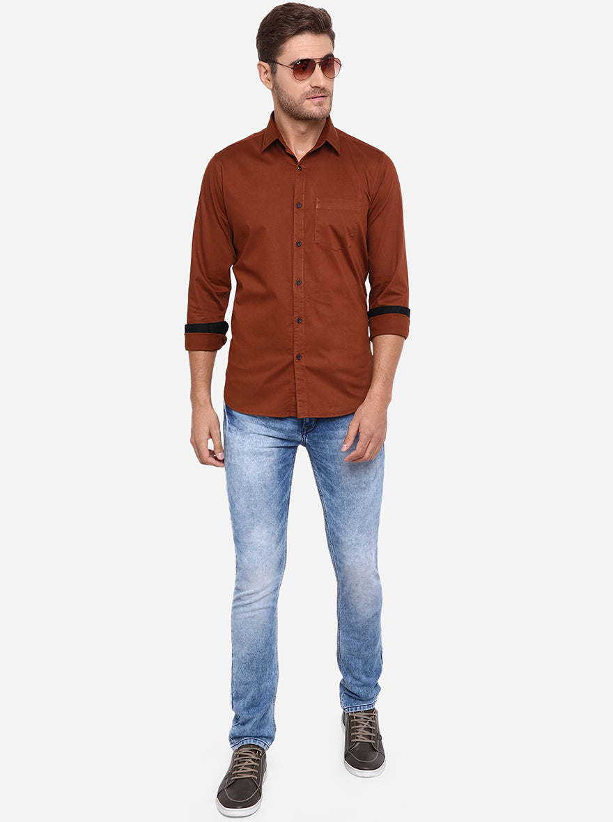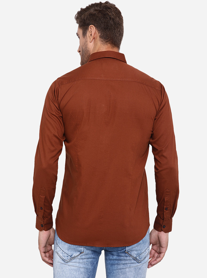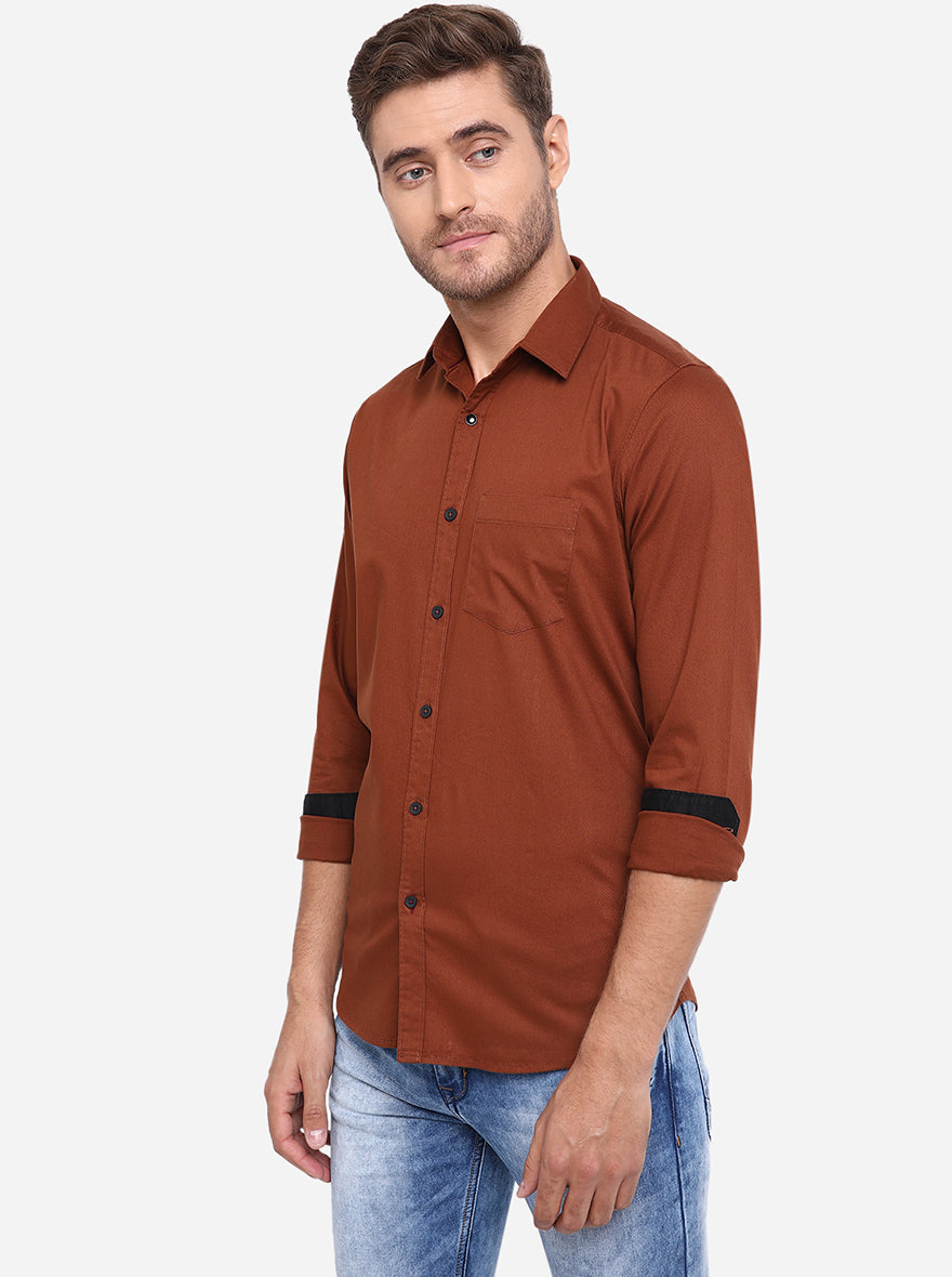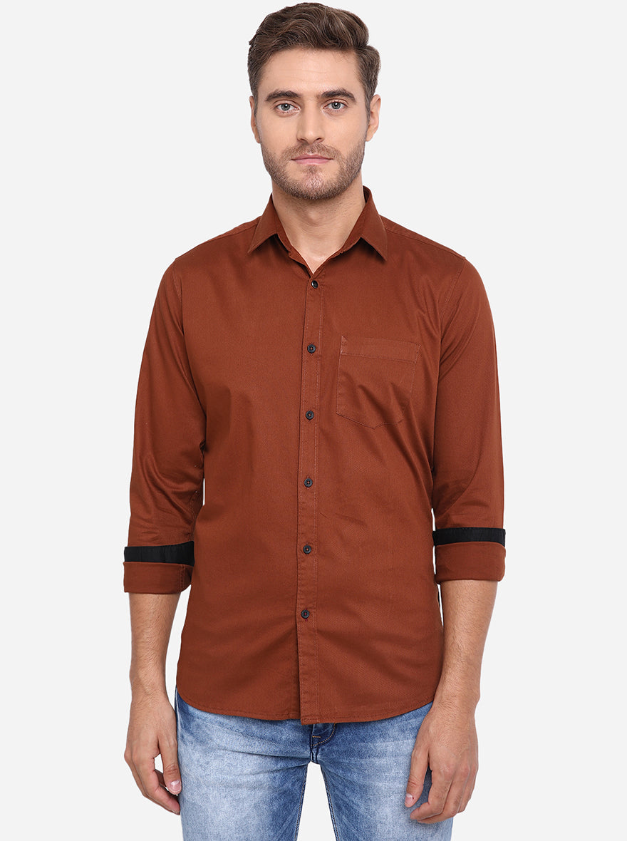 Sandstone Brown Solid Slim Fit Casual Shirt | JadeBlue