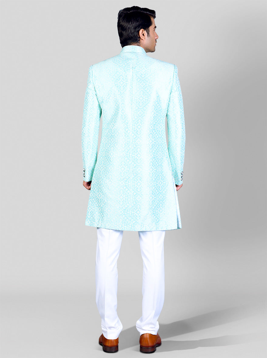 Sea Green & White Indowestern | Azania