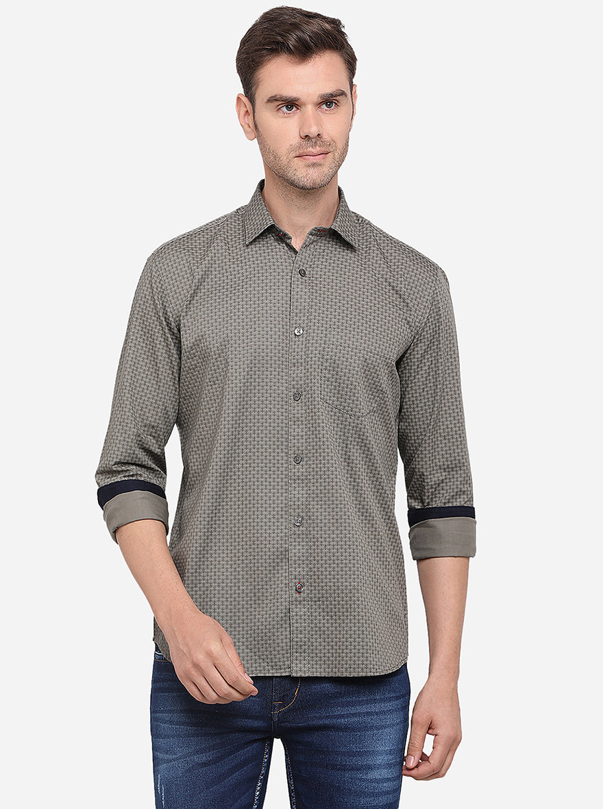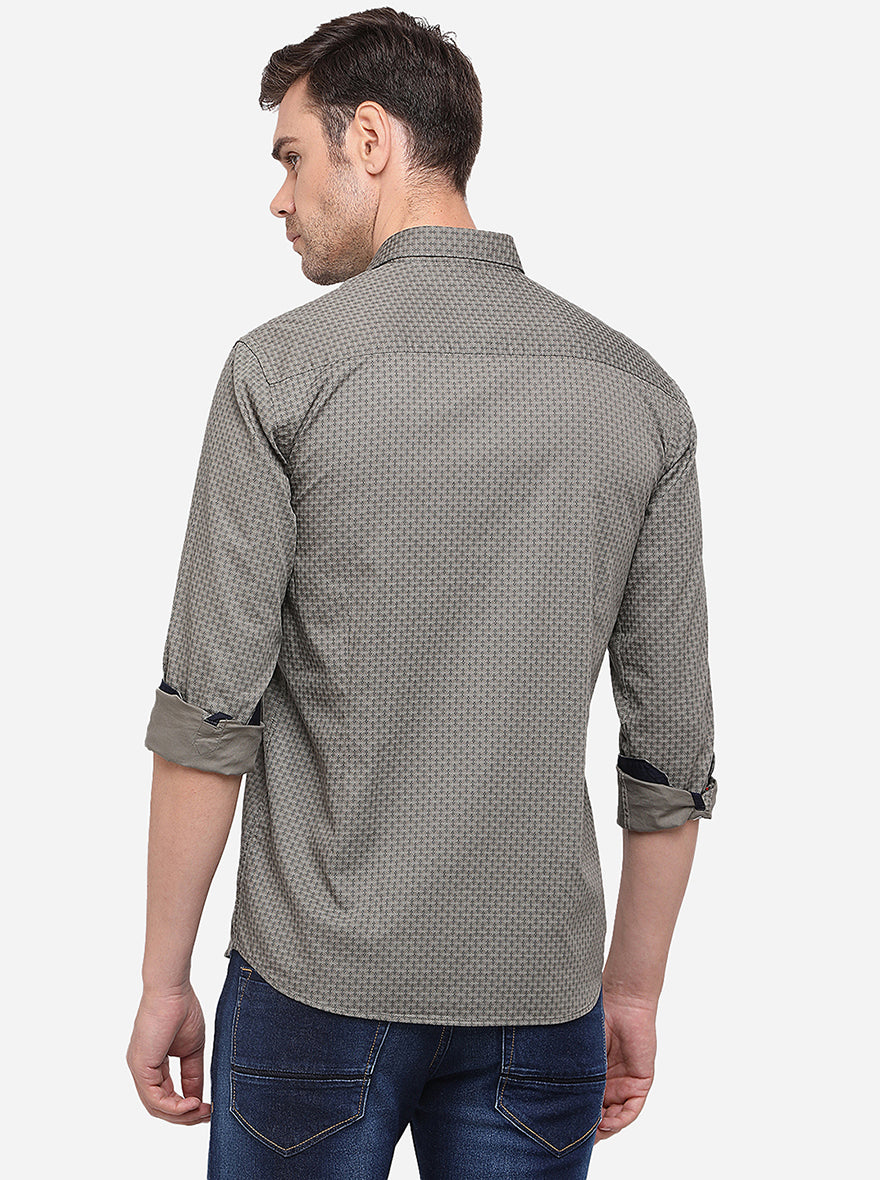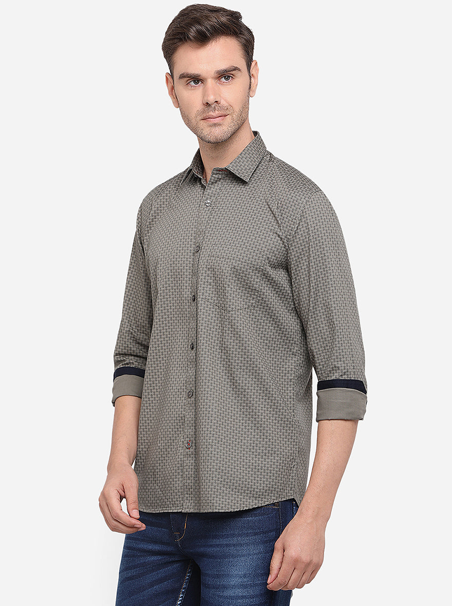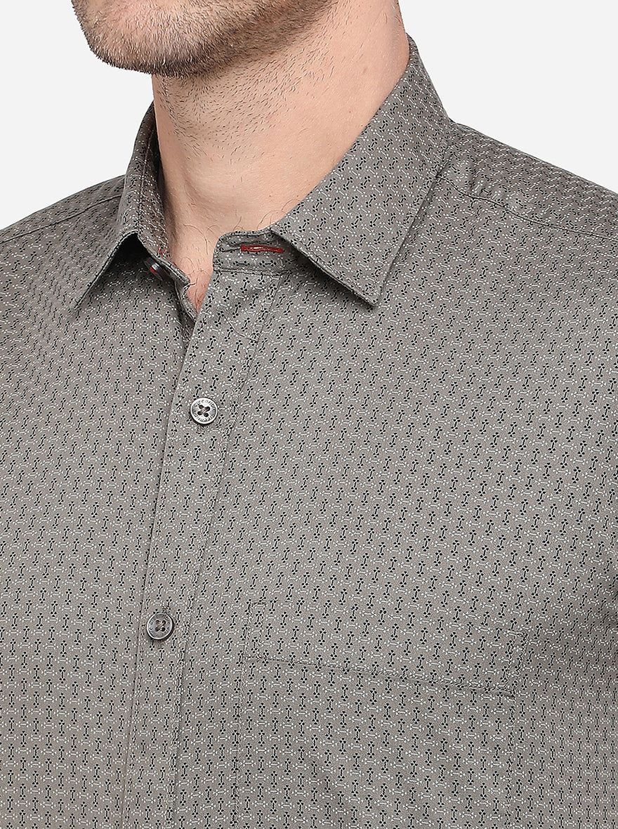 Shadow Grey Printed Slim Fit Semi Casual Shirt | Greenfibre