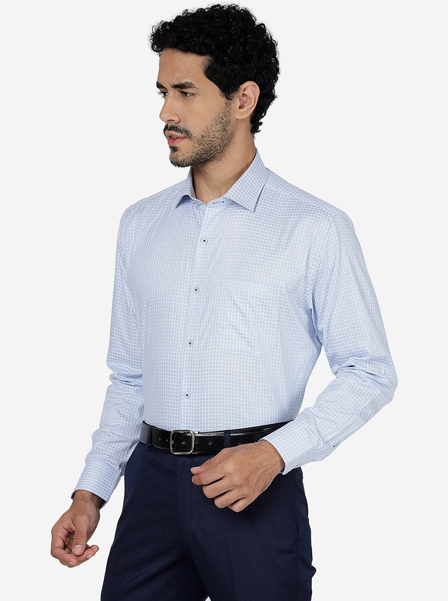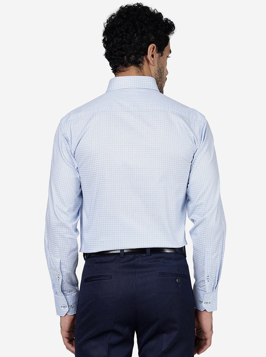 Sky Blue Checked Regular Fit Formal Shirt | JadeBlue