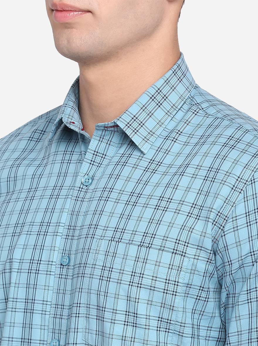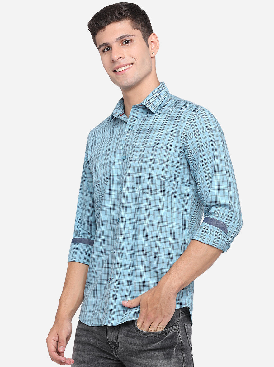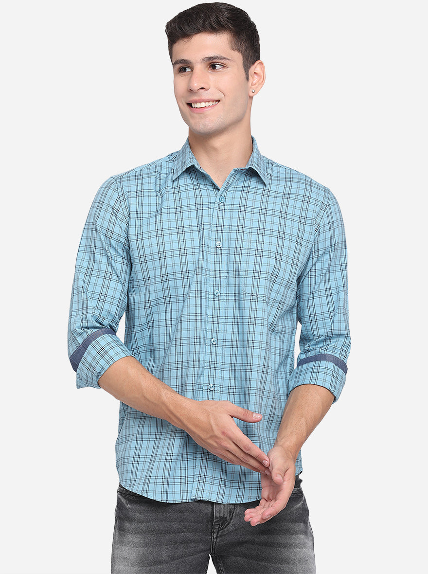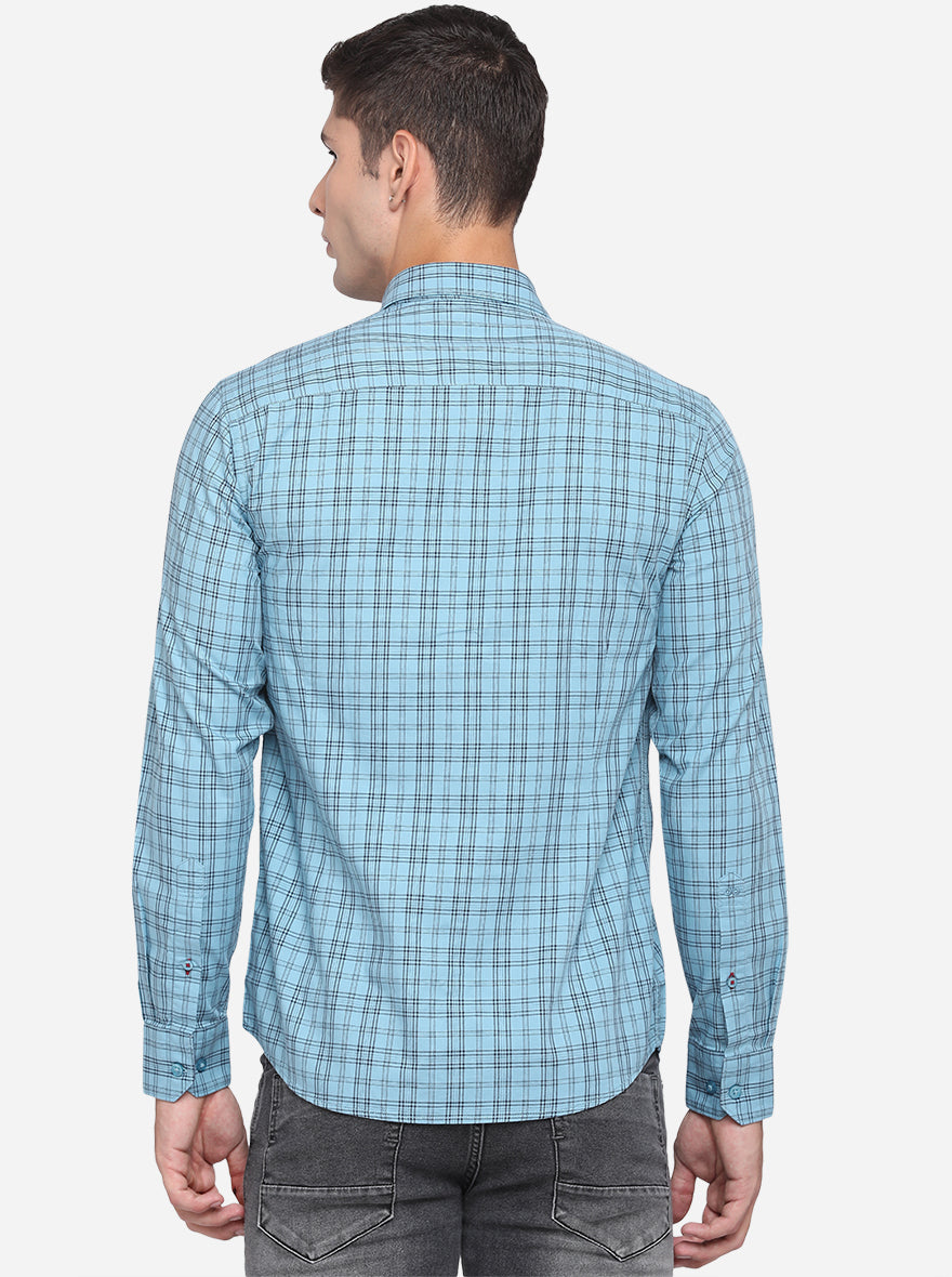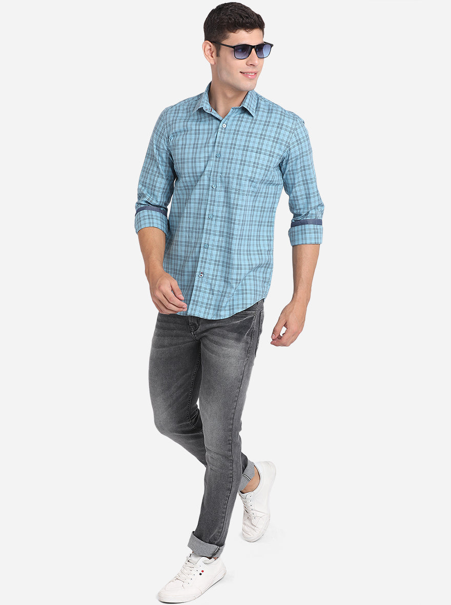 Sky Blue Checked Slim Fit Casual Shirt | JadeBlue