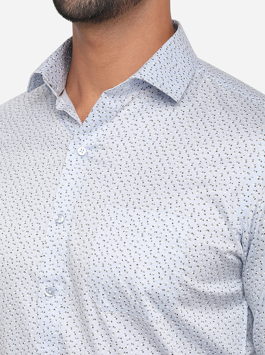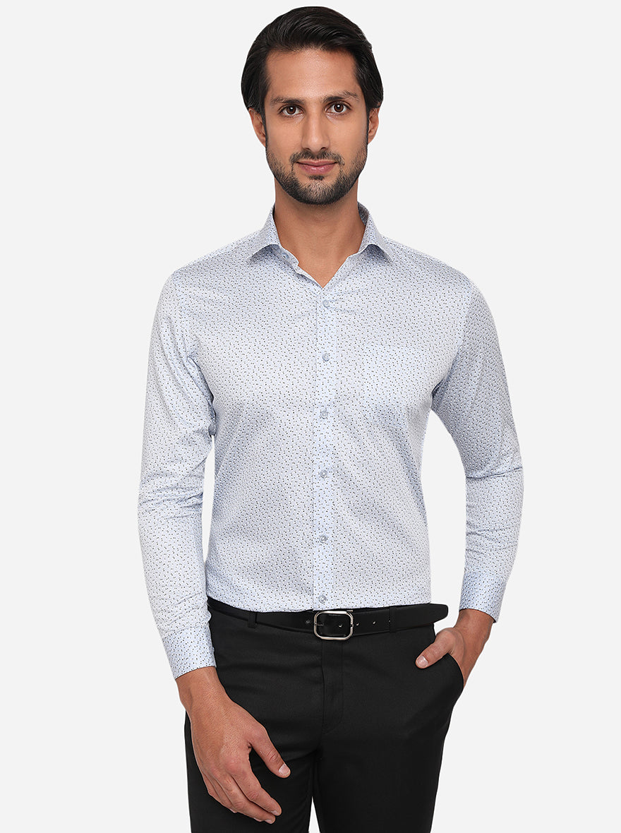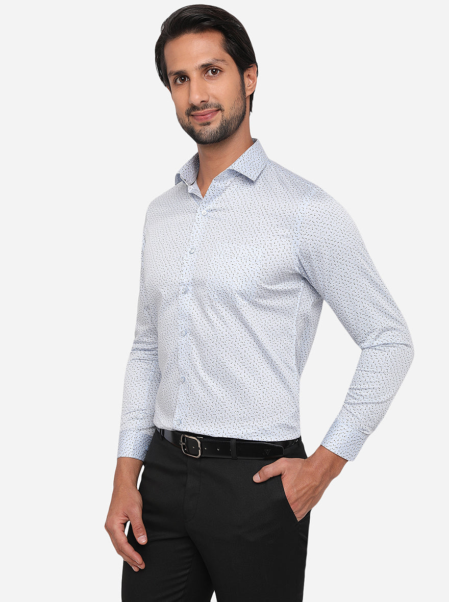 Sky Blue Printed Slim Fit Formal Shirt | Greenfibre