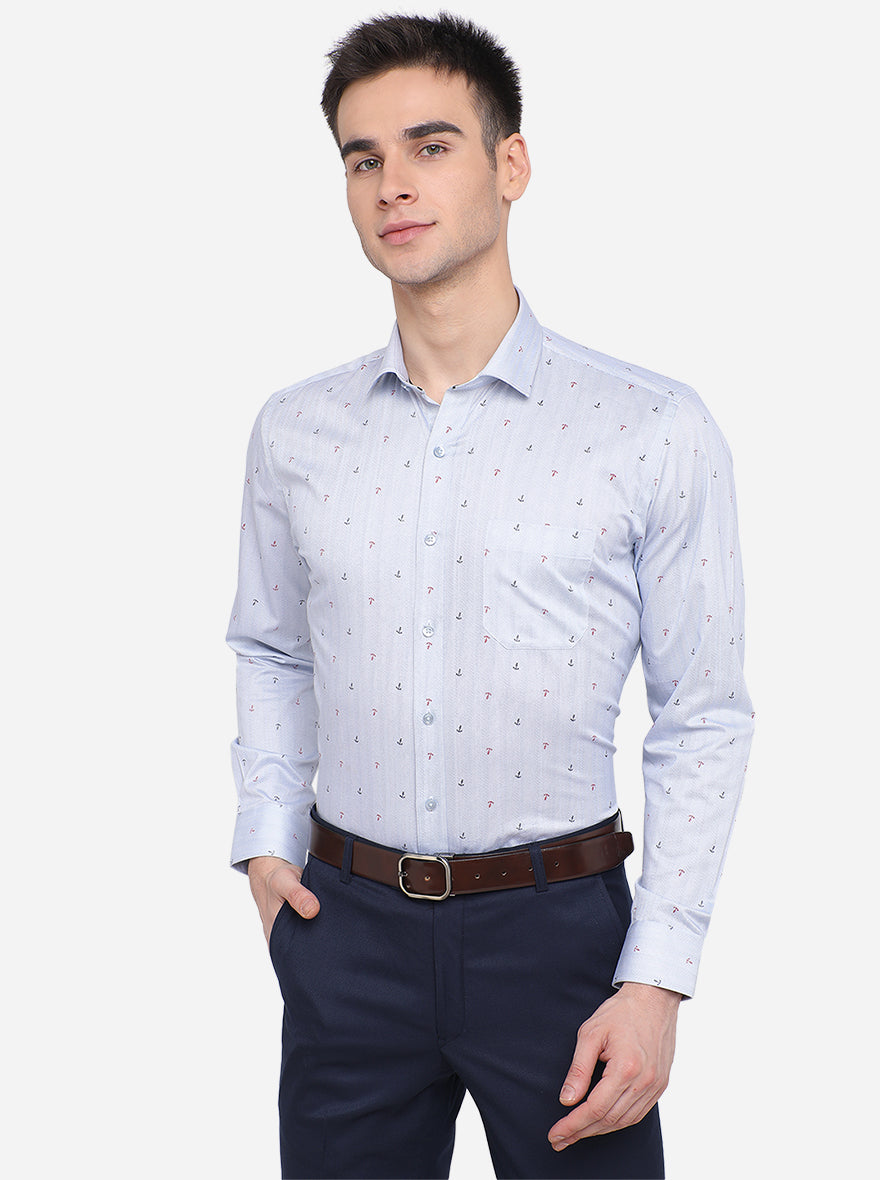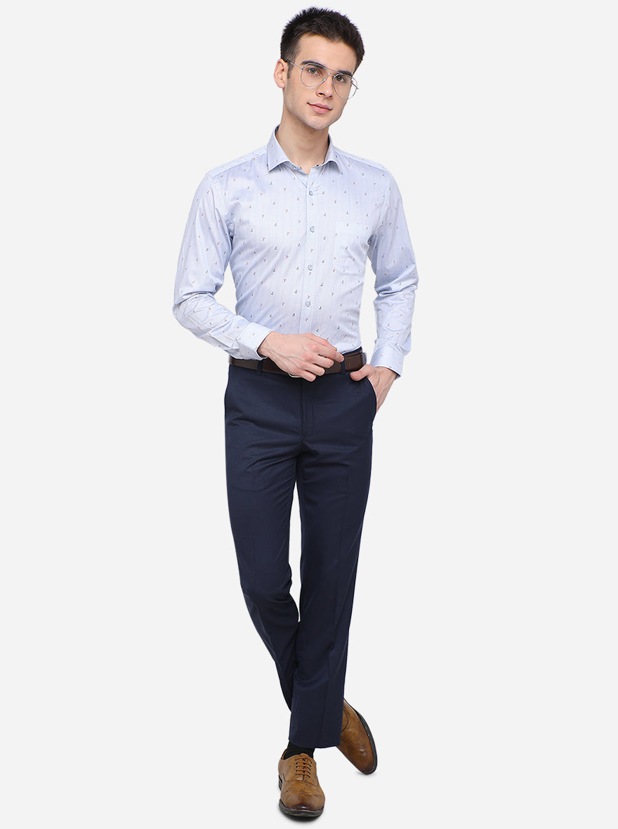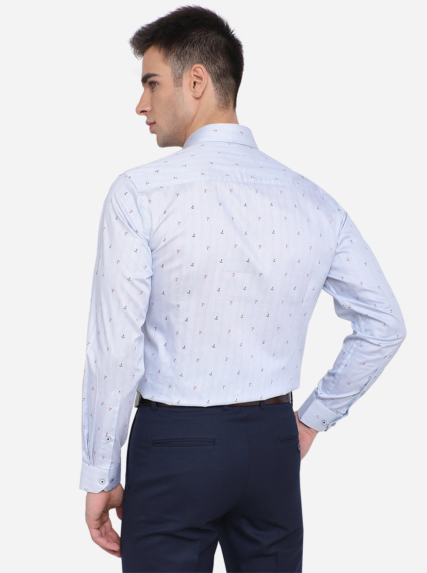 Sky Blue Printed Slim Fit Formal Shirt | Greenfibre